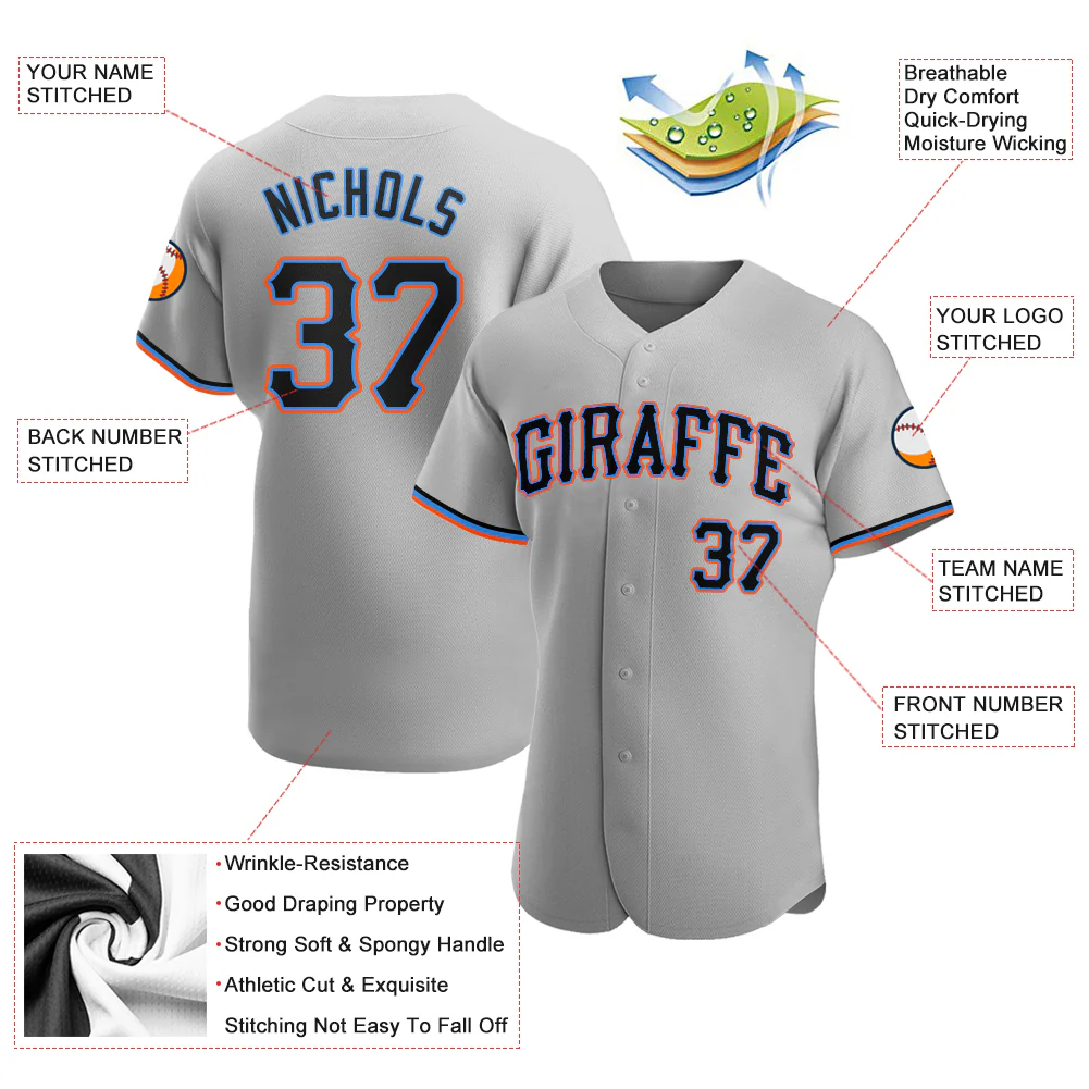 Custom Gray Black-Orange Authentic Baseball Jersey
