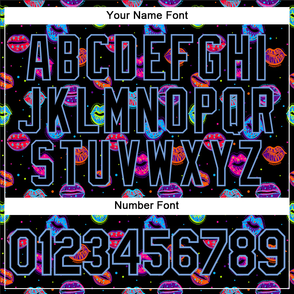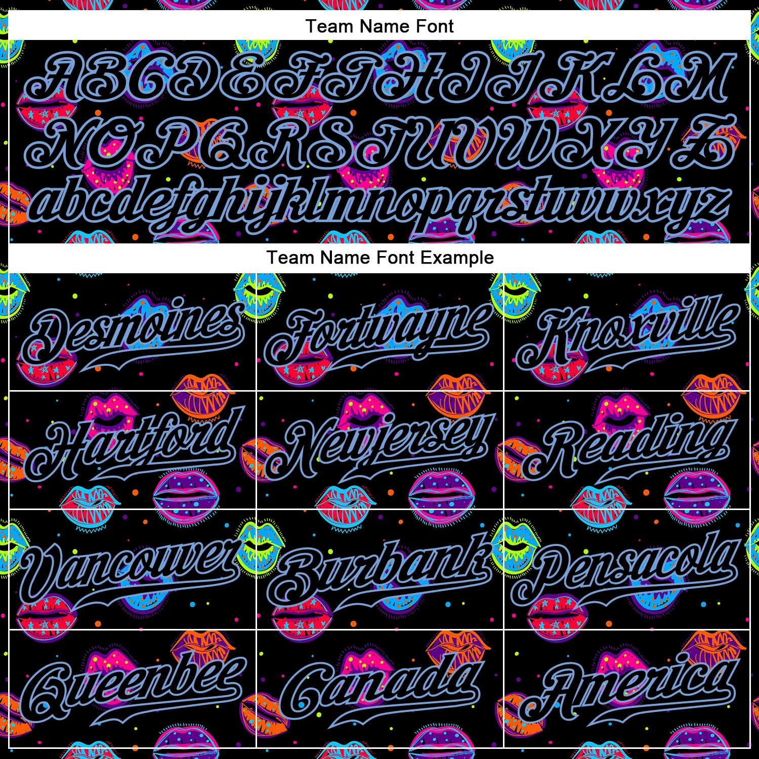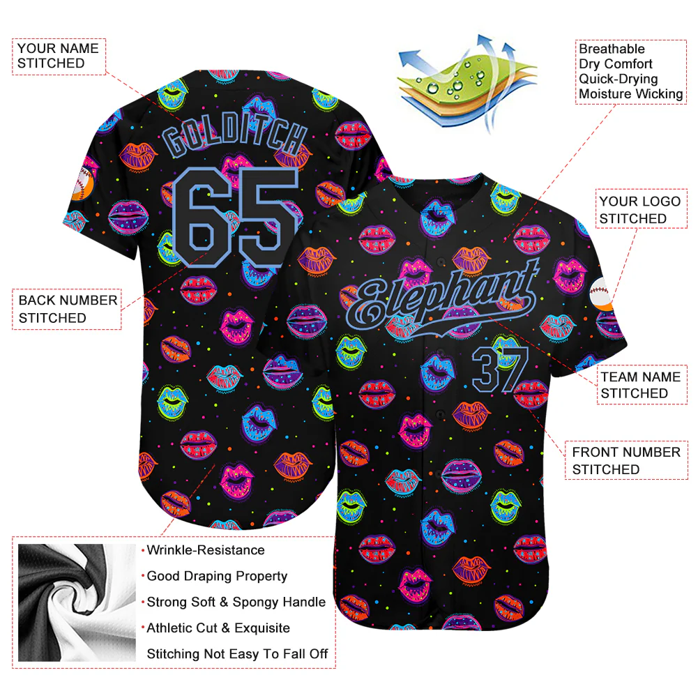 Custom Graffiti Pattern Black-Light Blue 3D Dots And Kiss Lips Authentic Baseball Jersey