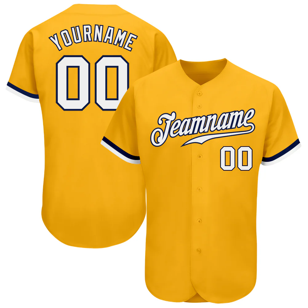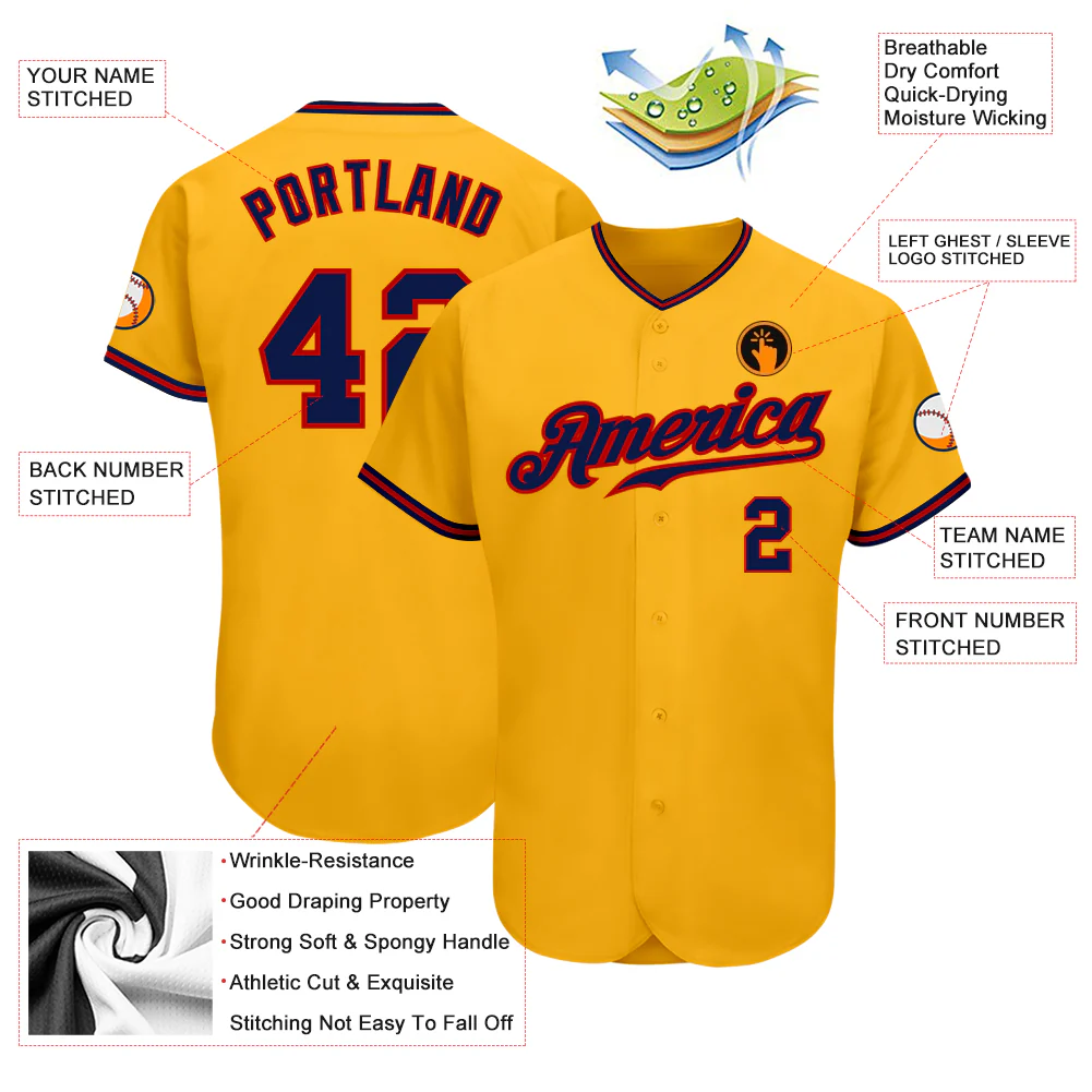 Custom Gold Navy-Red Authentic Baseball Jersey