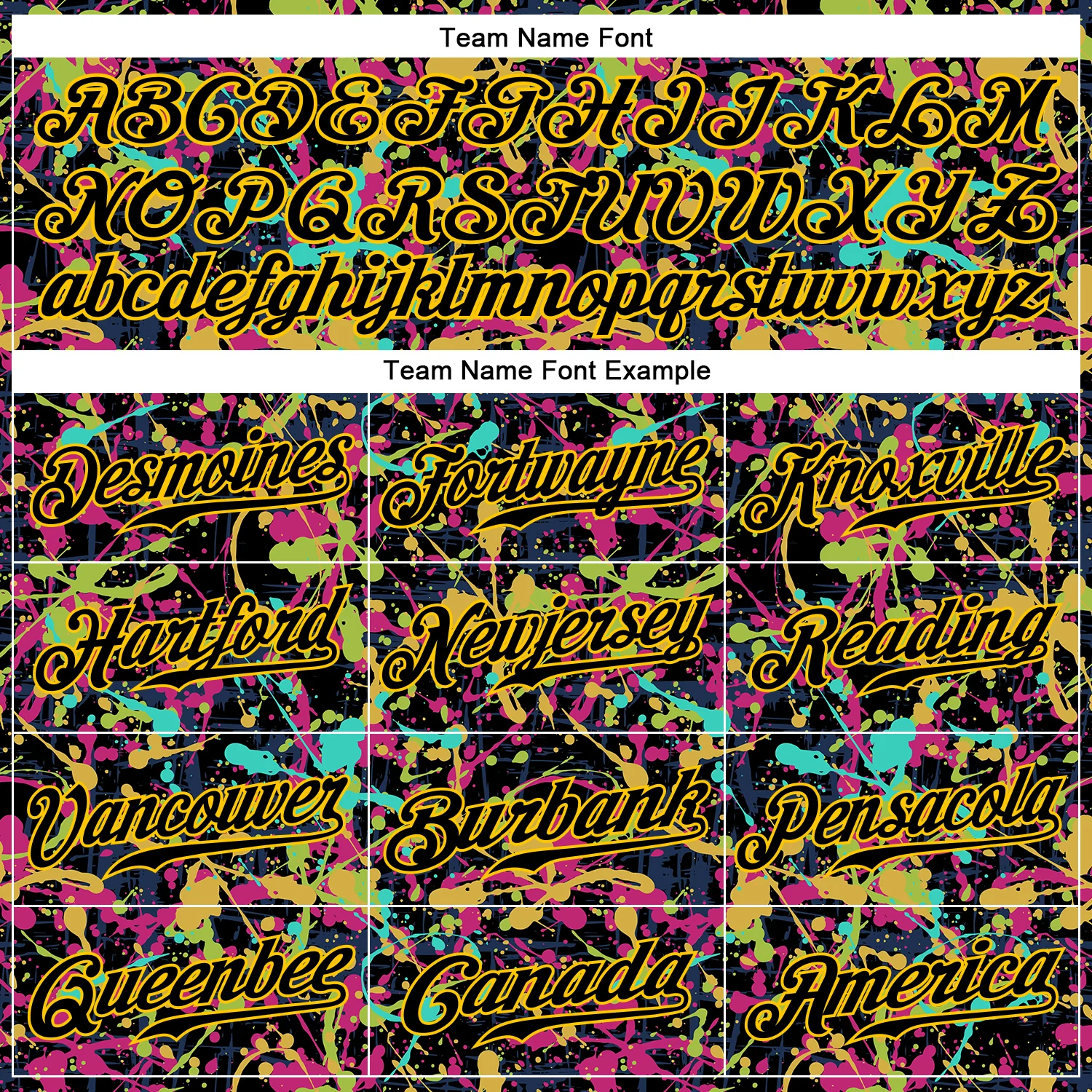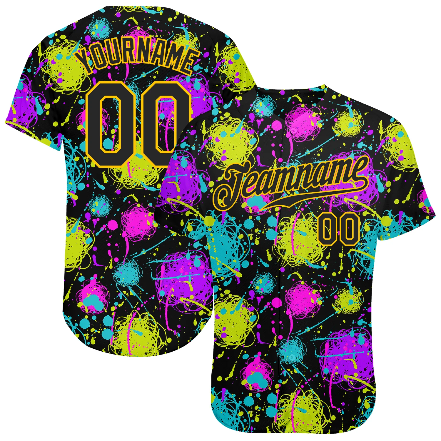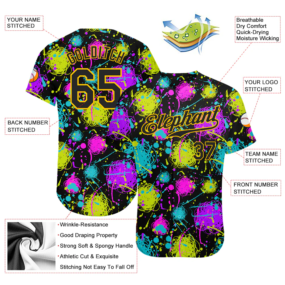 Custom Graffiti Pattern Black-Gold 3D Neon Splatter Authentic Baseball Jersey