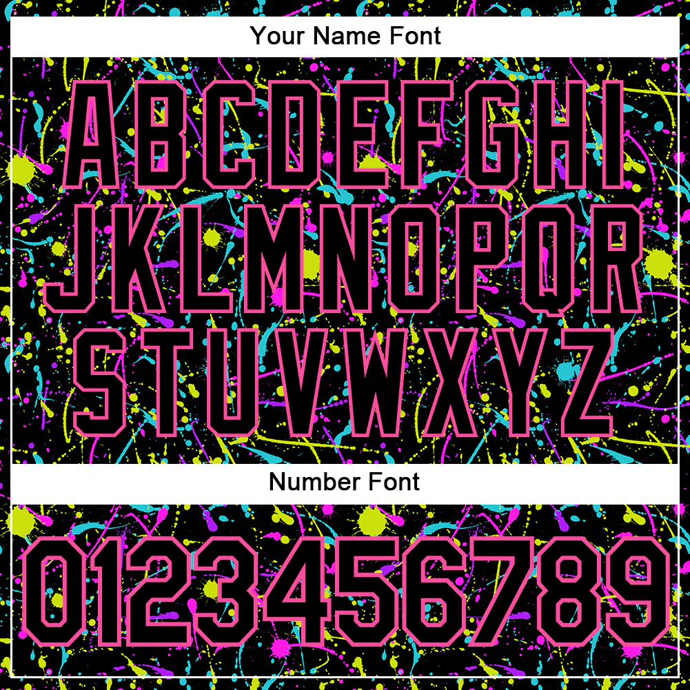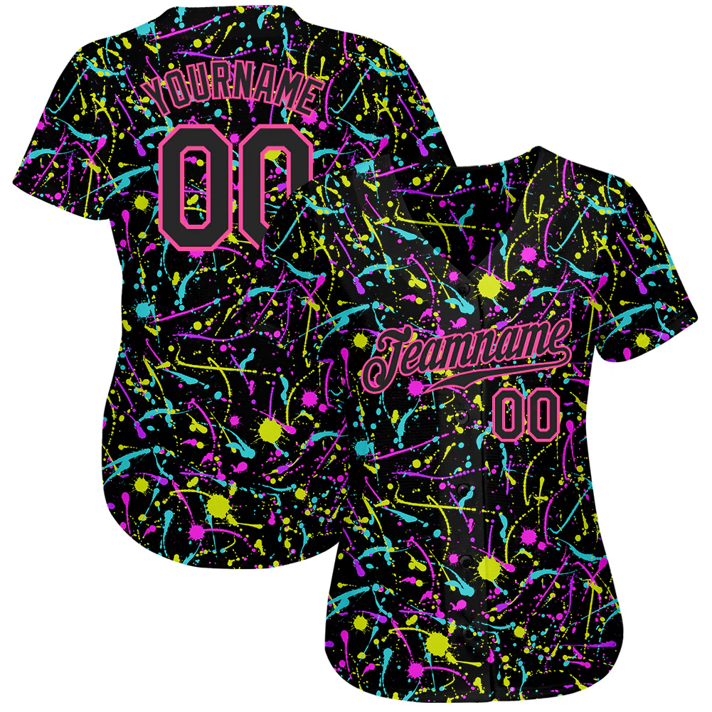 Custom Graffiti Pattern Black-Pink 3D Neon Splatter Authentic Baseball Jersey