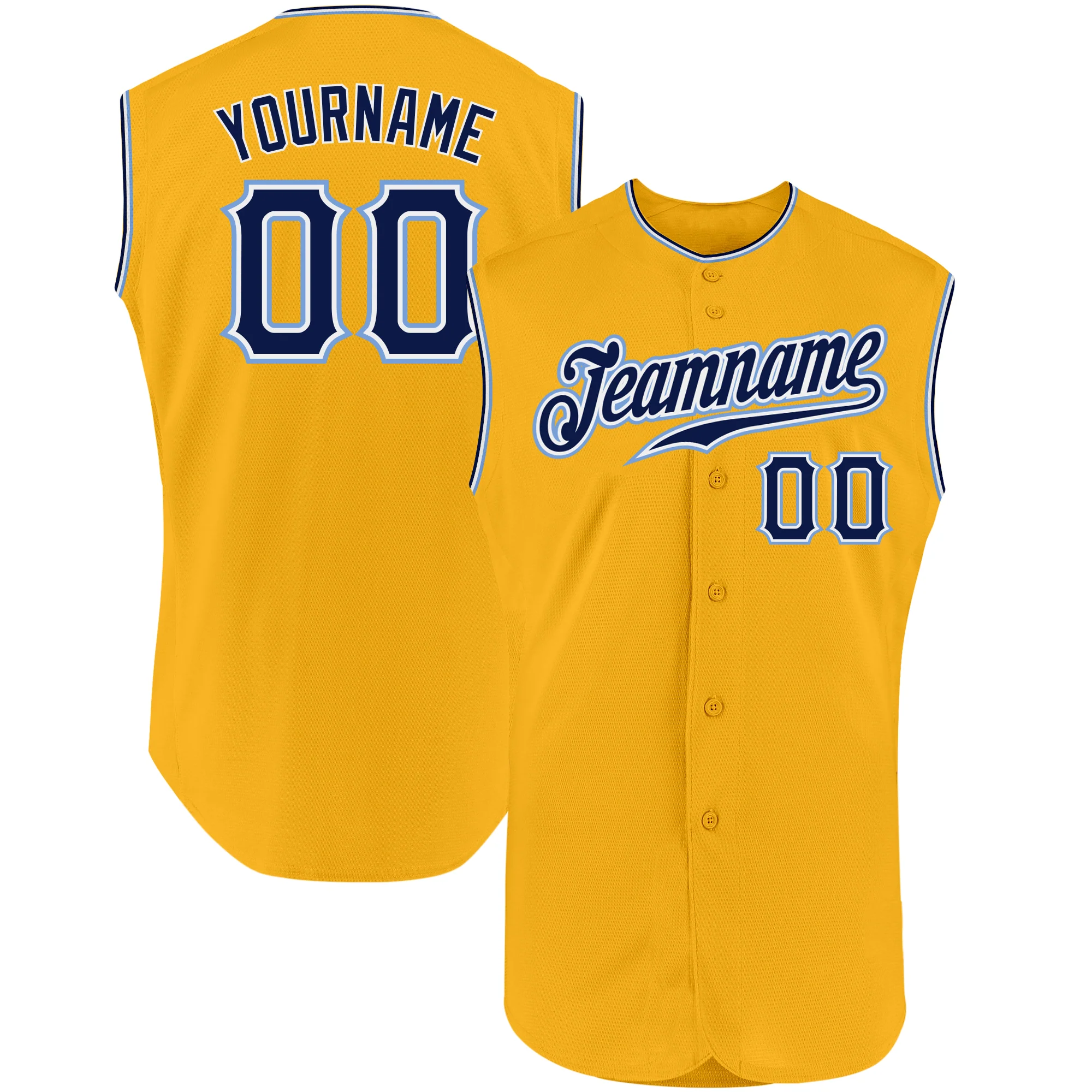 Custom Gold Navy-Light Blue Authentic Sleeveless Baseball Jersey