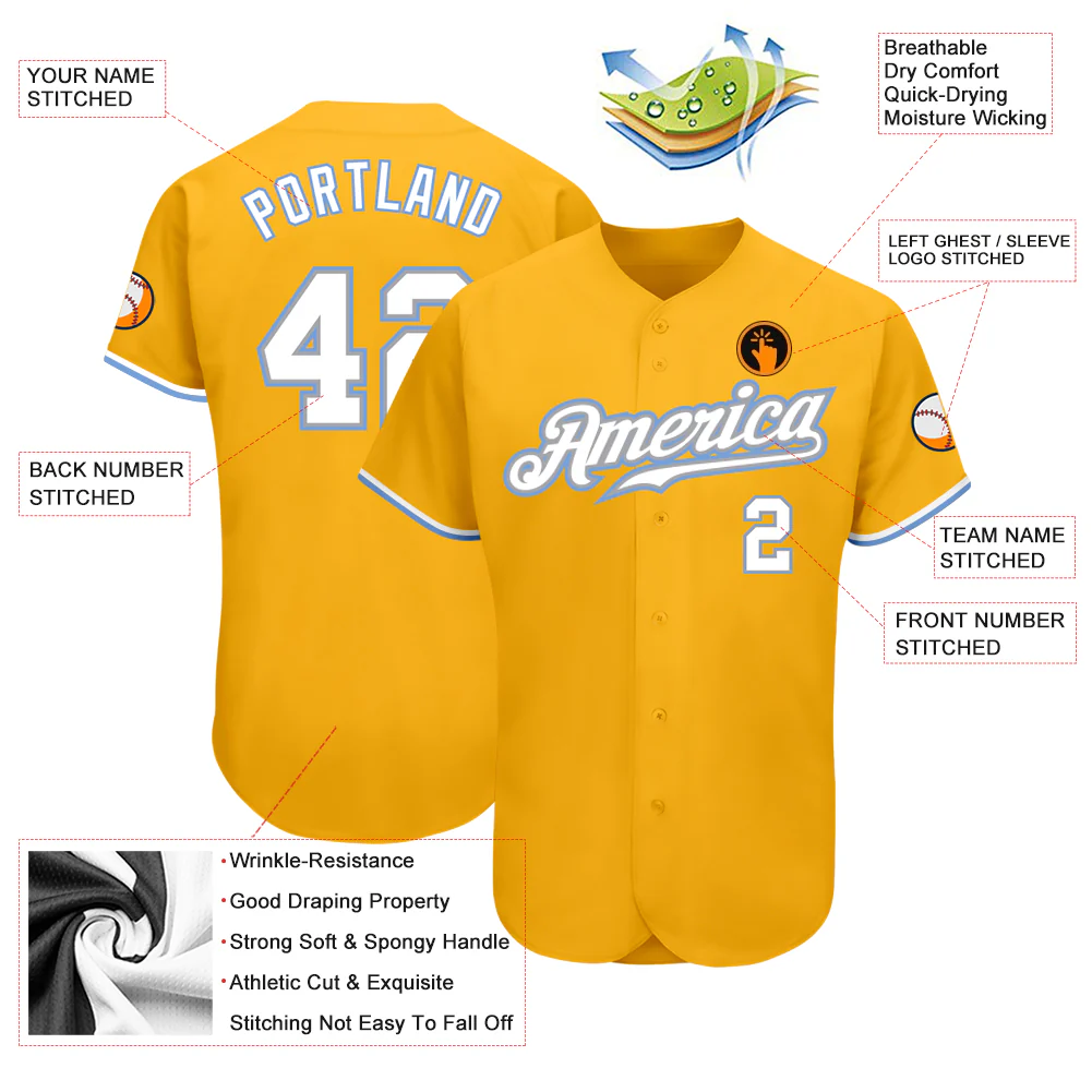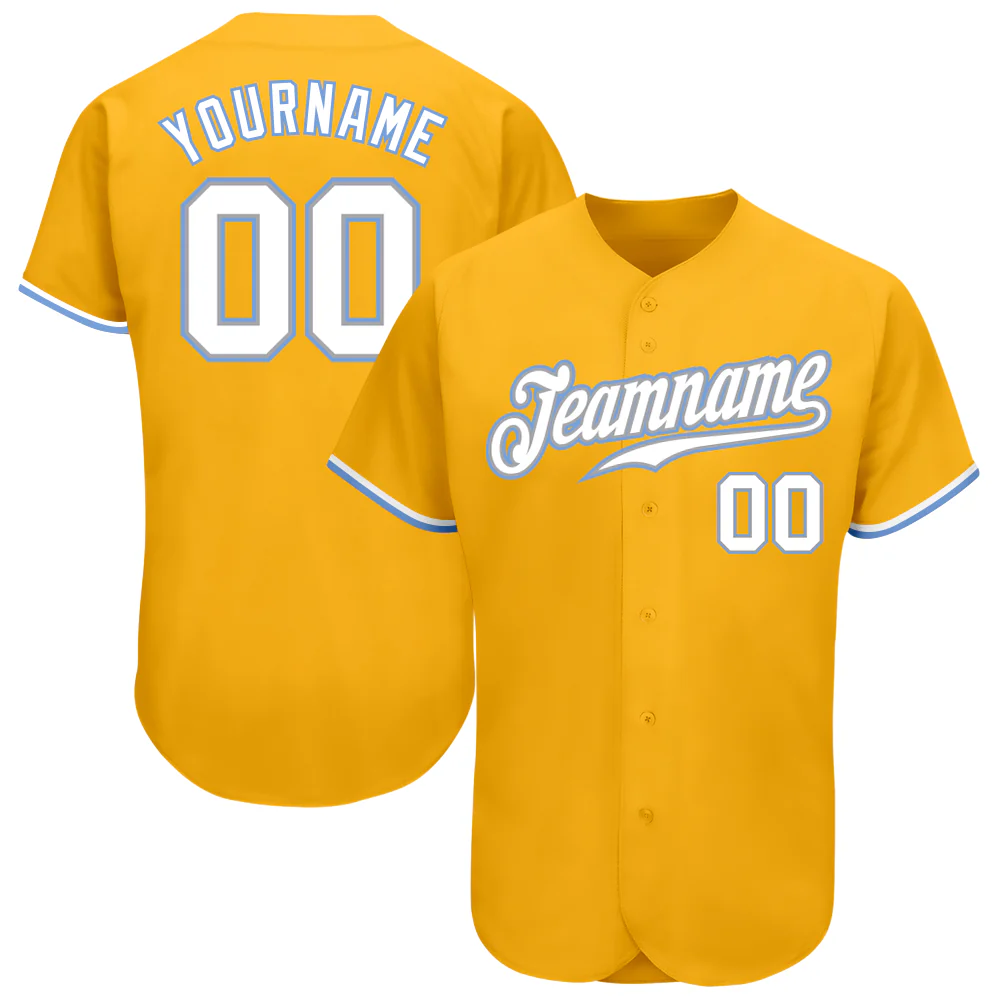 Custom Gold White-Light Blue Authentic Baseball Jersey