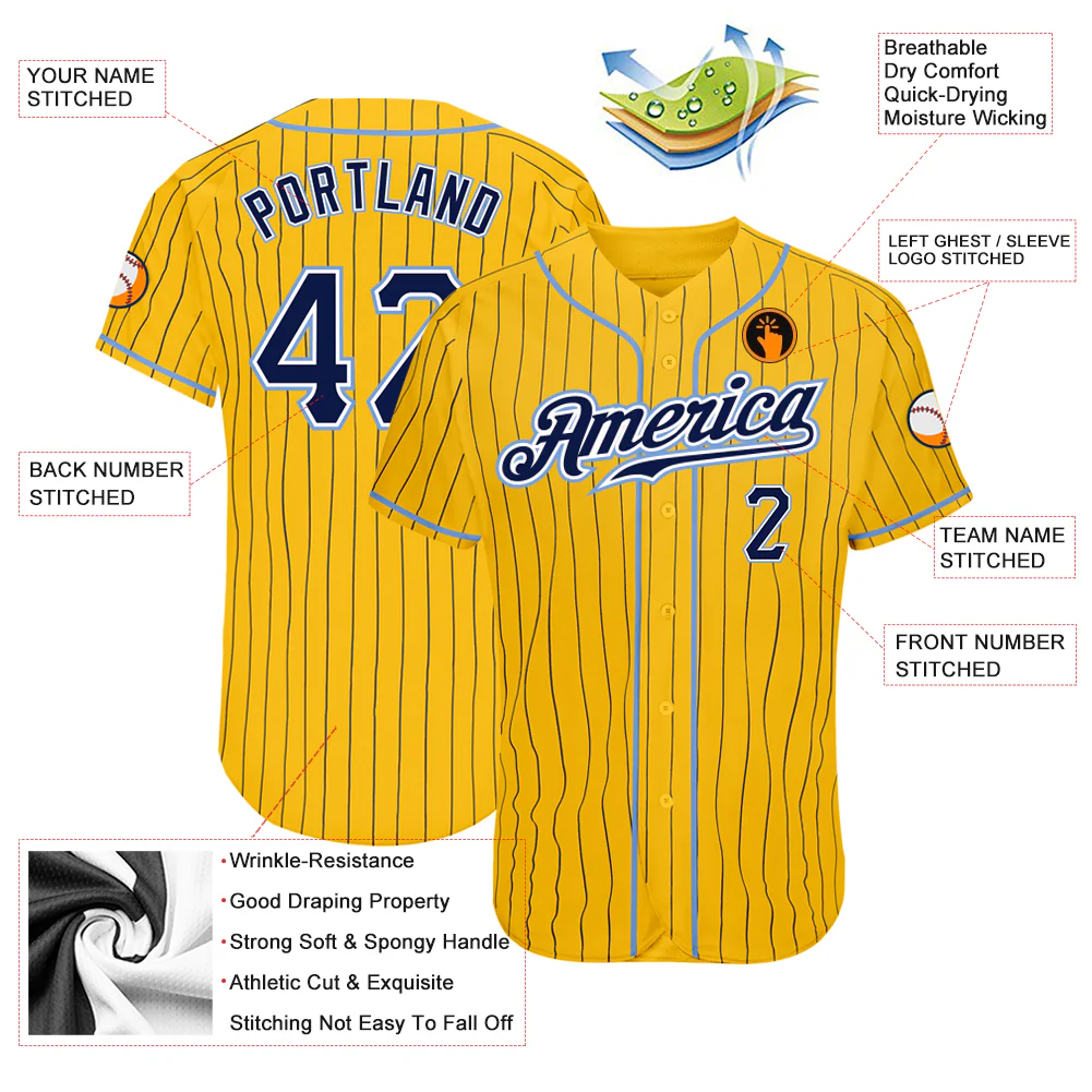 Custom Yellow Navy Pinstripe Navy-Light Blue Authentic Baseball Jersey