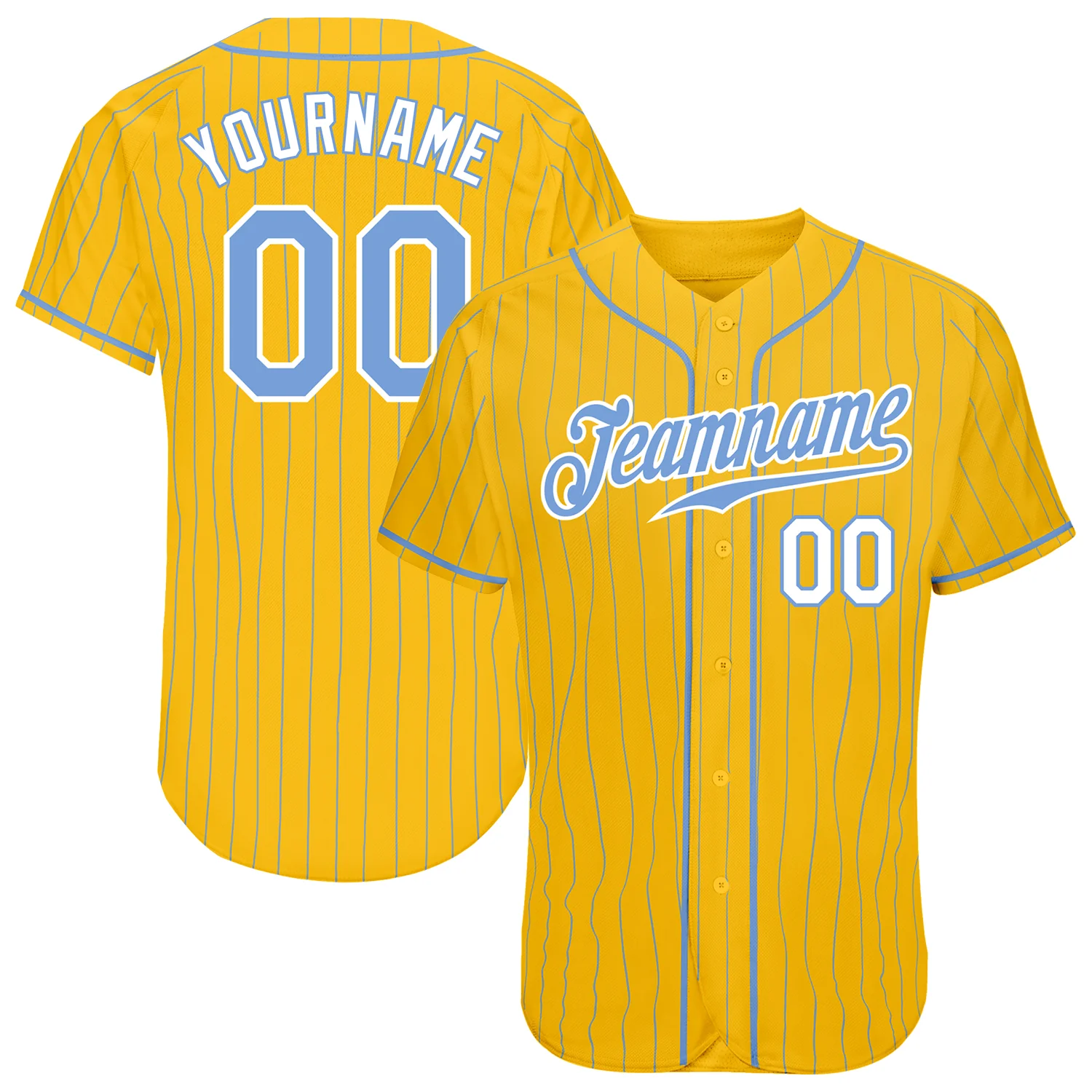 Custom Yellow Light Blue Pinstripe Light Blue-White Authentic Baseball Jersey