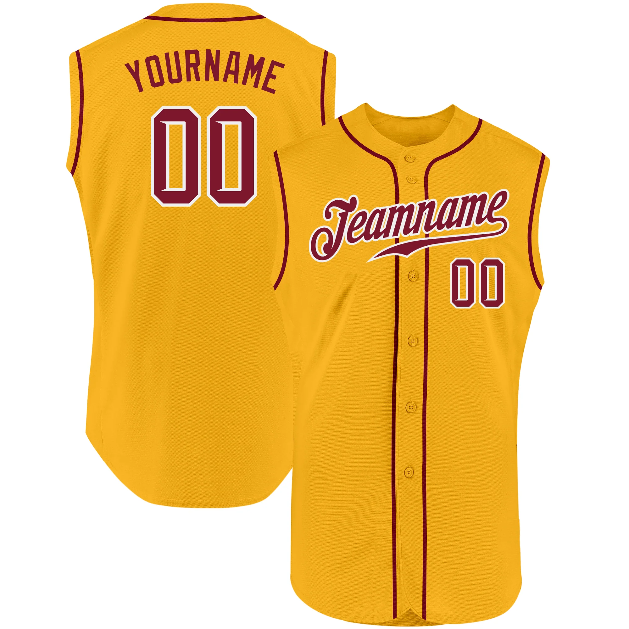 Custom Gold Crimson-White Authentic Sleeveless Baseball Jersey