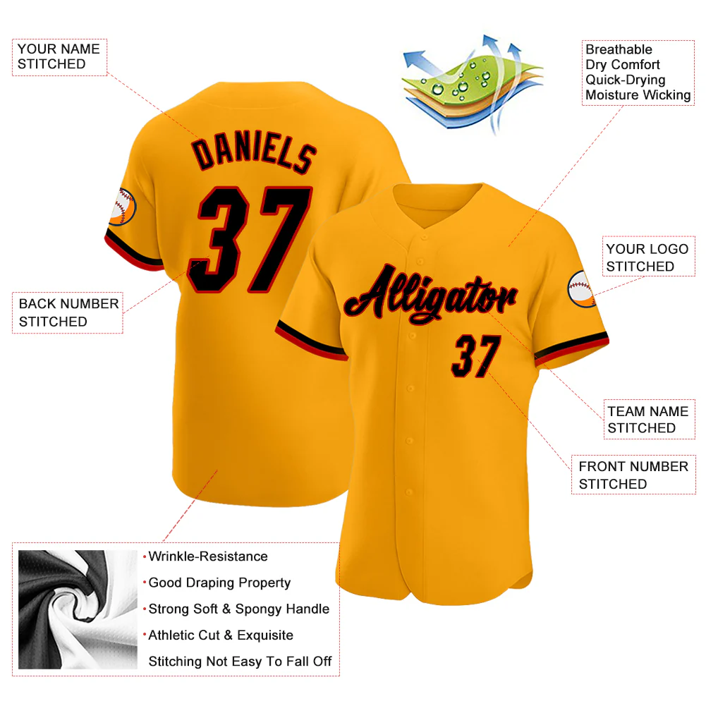 Custom Gold Black-Red Authentic Baseball Jersey