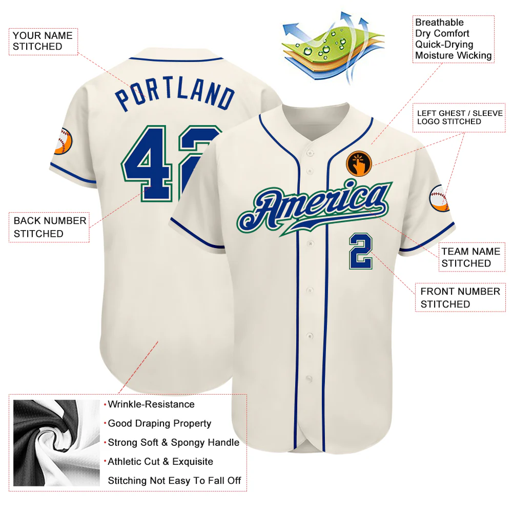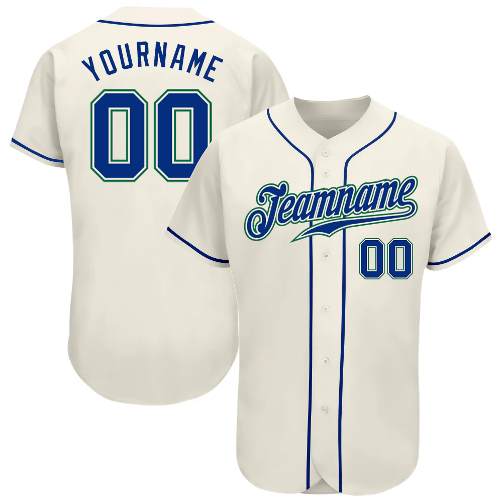 Custom Cream Royal-Kelly Green Authentic Baseball Jersey