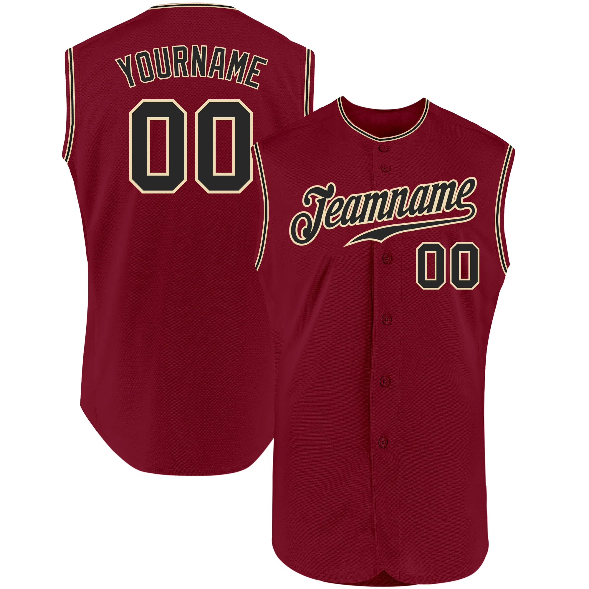 Custom Crimson Black-Cream Authentic Sleeveless Baseball Jersey