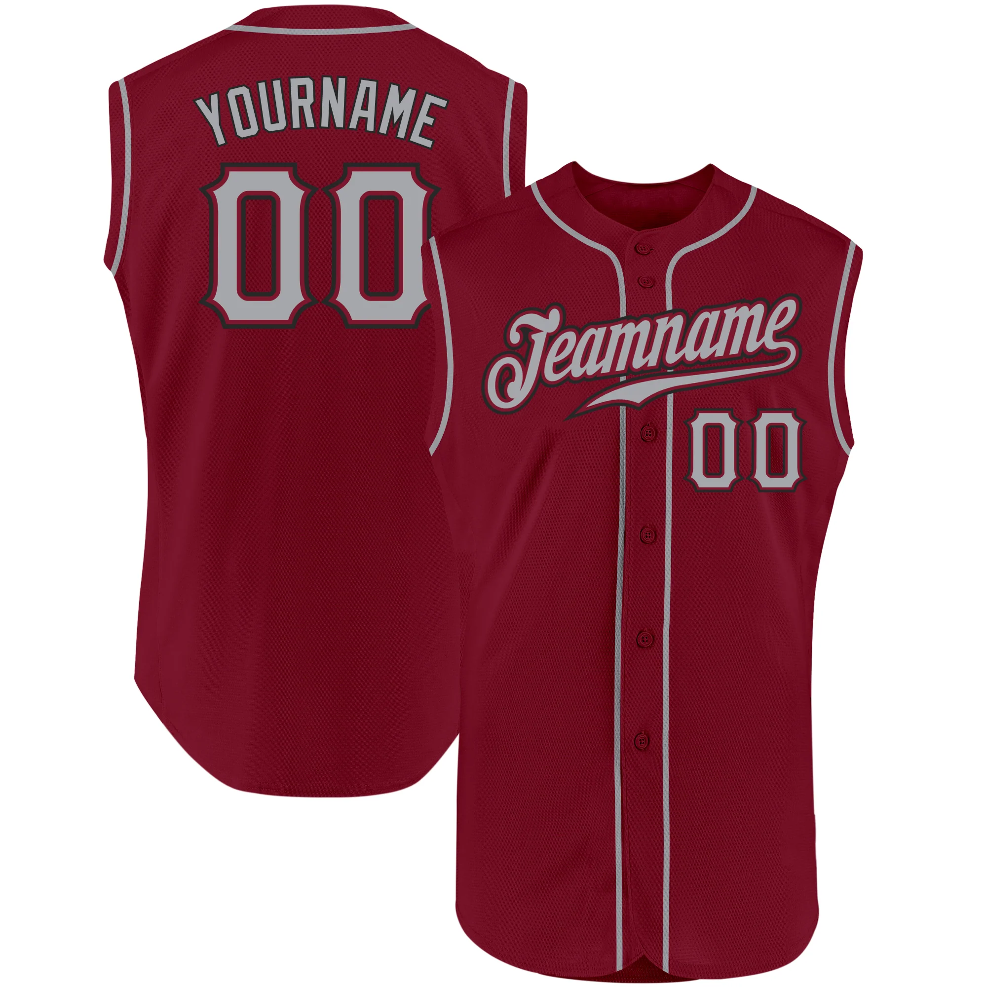 Custom Crimson Gray-Black Authentic Sleeveless Baseball Jersey