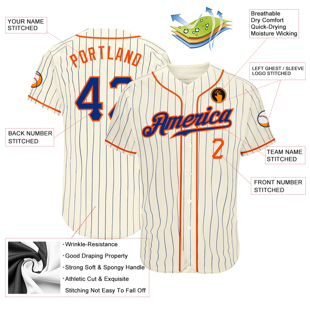 Custom Cream Royal Pinstripe Royal-Orange Authentic Baseball Jersey