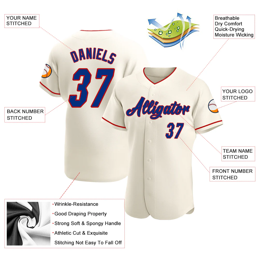 Custom Cream Royal-Red Authentic Baseball Jersey