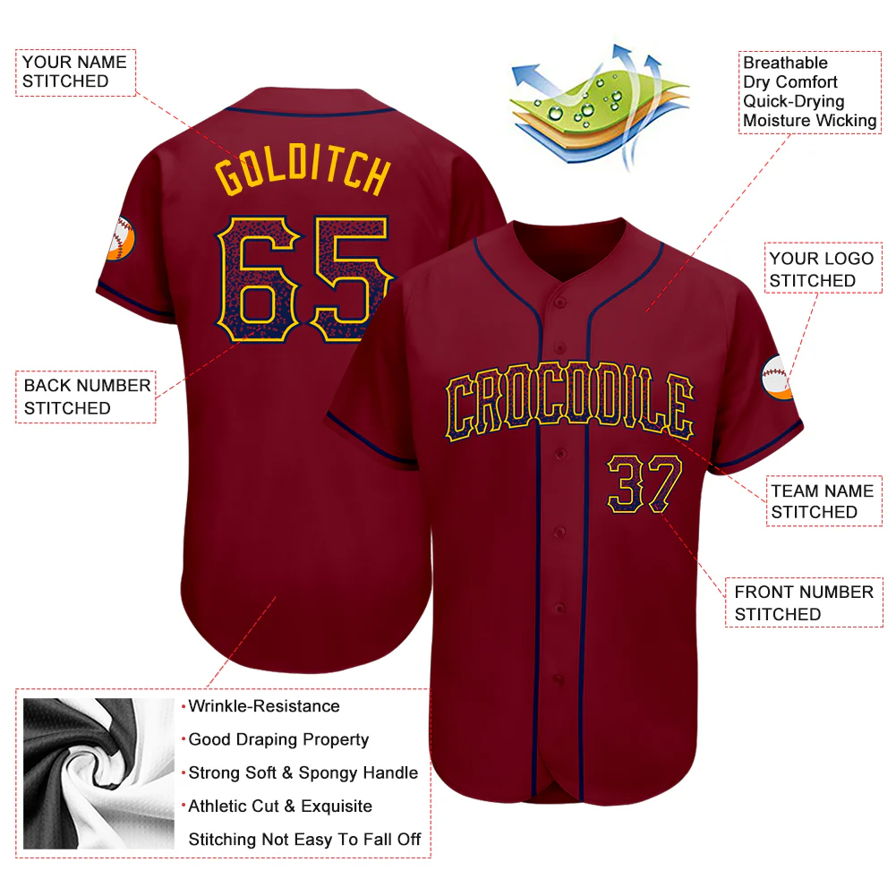 Custom Crimson Navy-Gold Authentic Drift Fashion Baseball Jersey