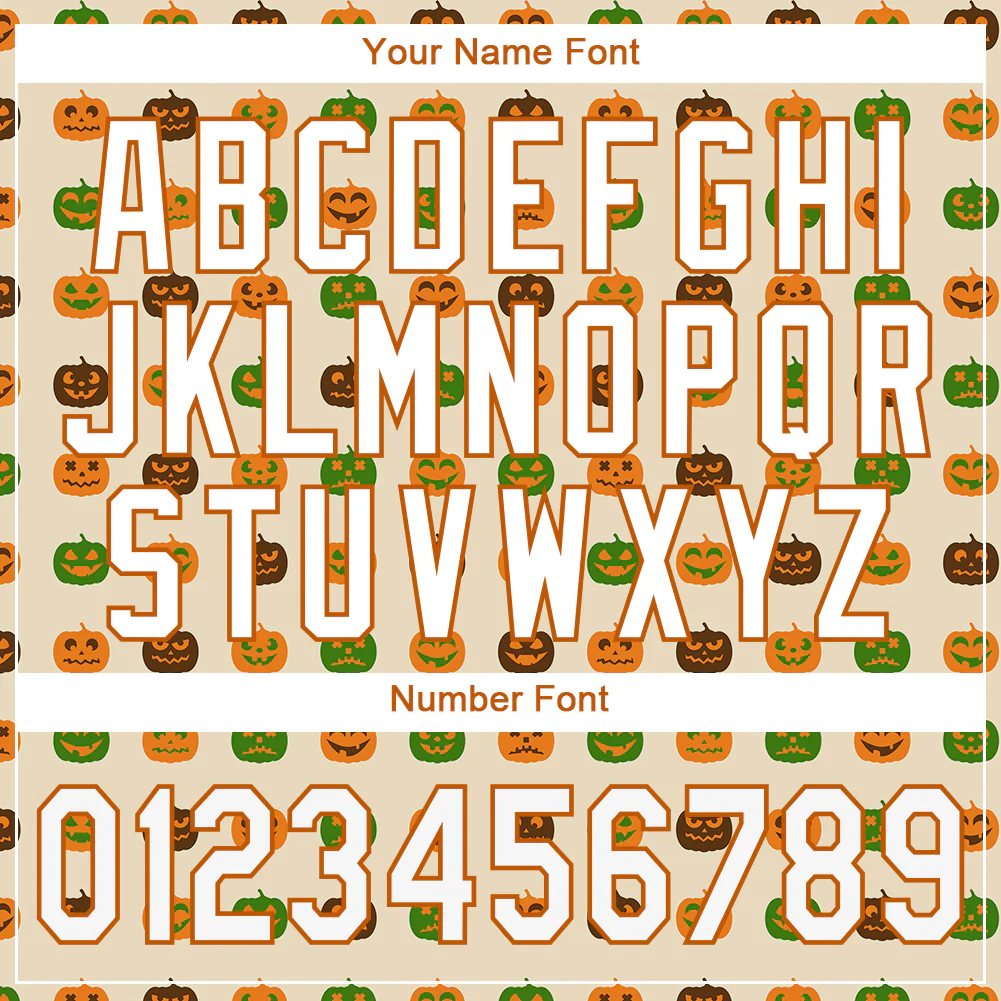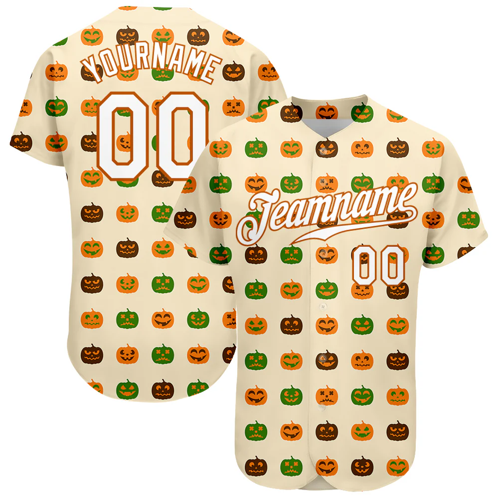Custom Cream White-Texas Orange 3D Pattern Design Halloween Pumpkins Authentic Baseball Jersey