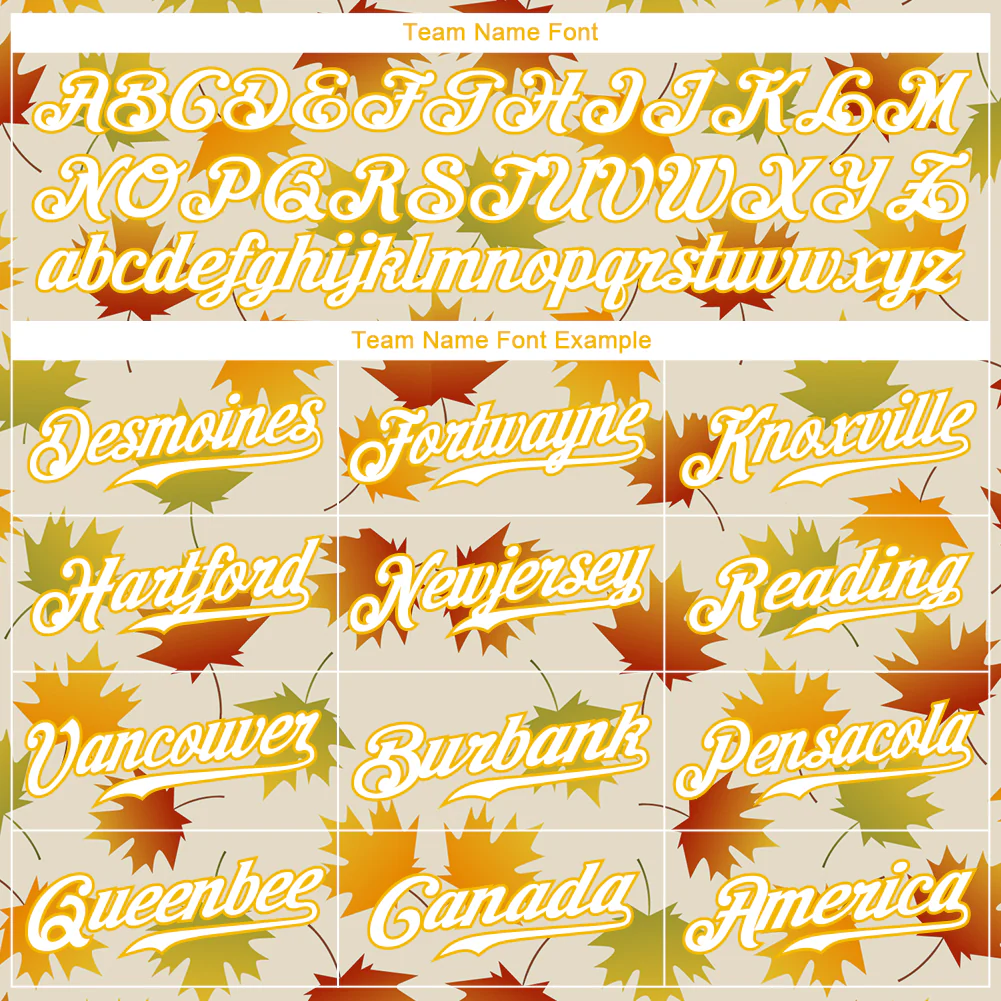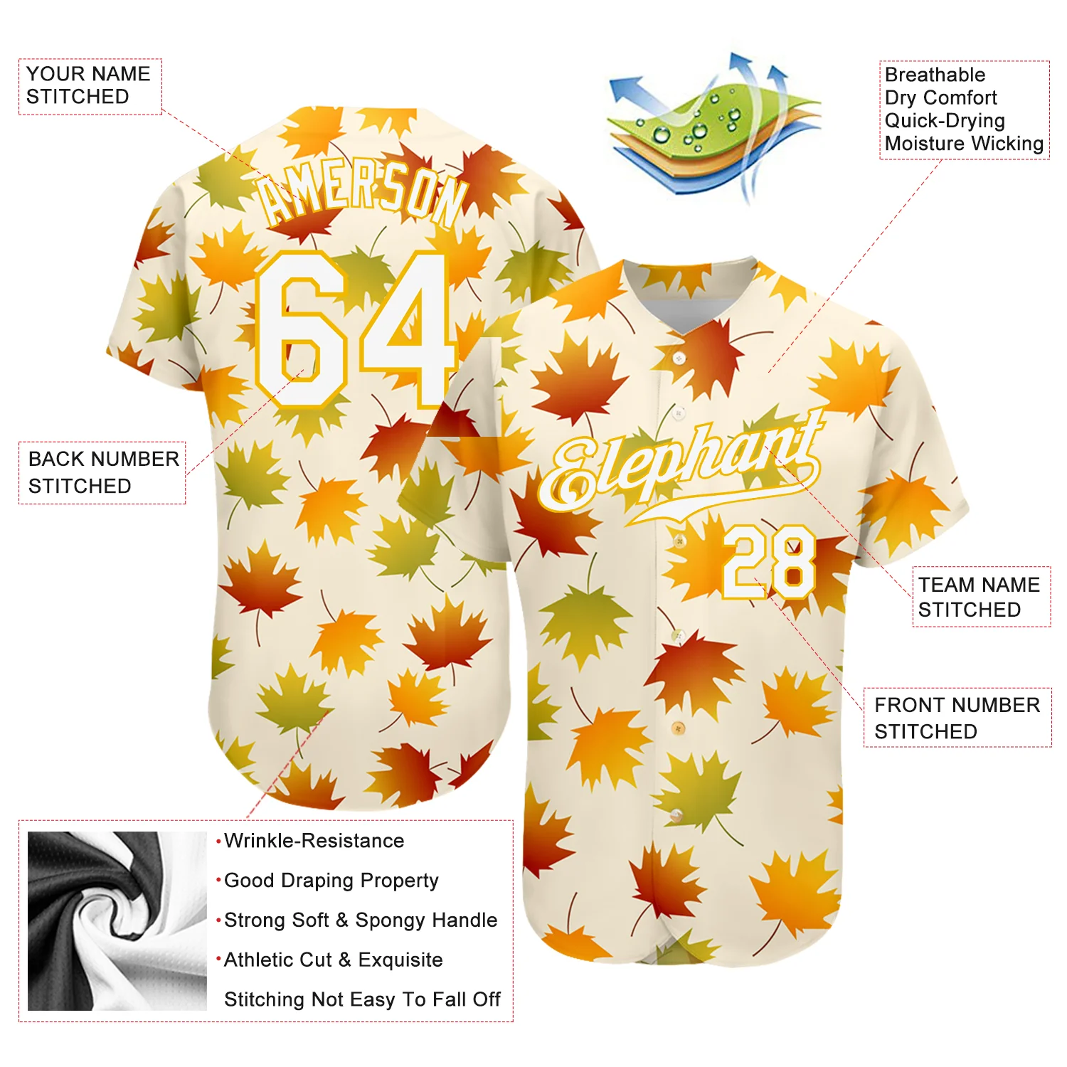 Custom Cream White-Gold 3D Pattern Design Maple Leaf Authentic Baseball Jersey