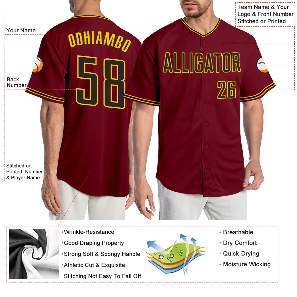 Custom Crimson Black-Gold Authentic Baseball Jersey