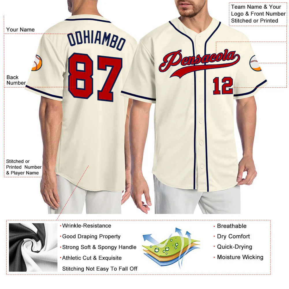 Custom Cream Red-Navy Authentic Baseball Jersey