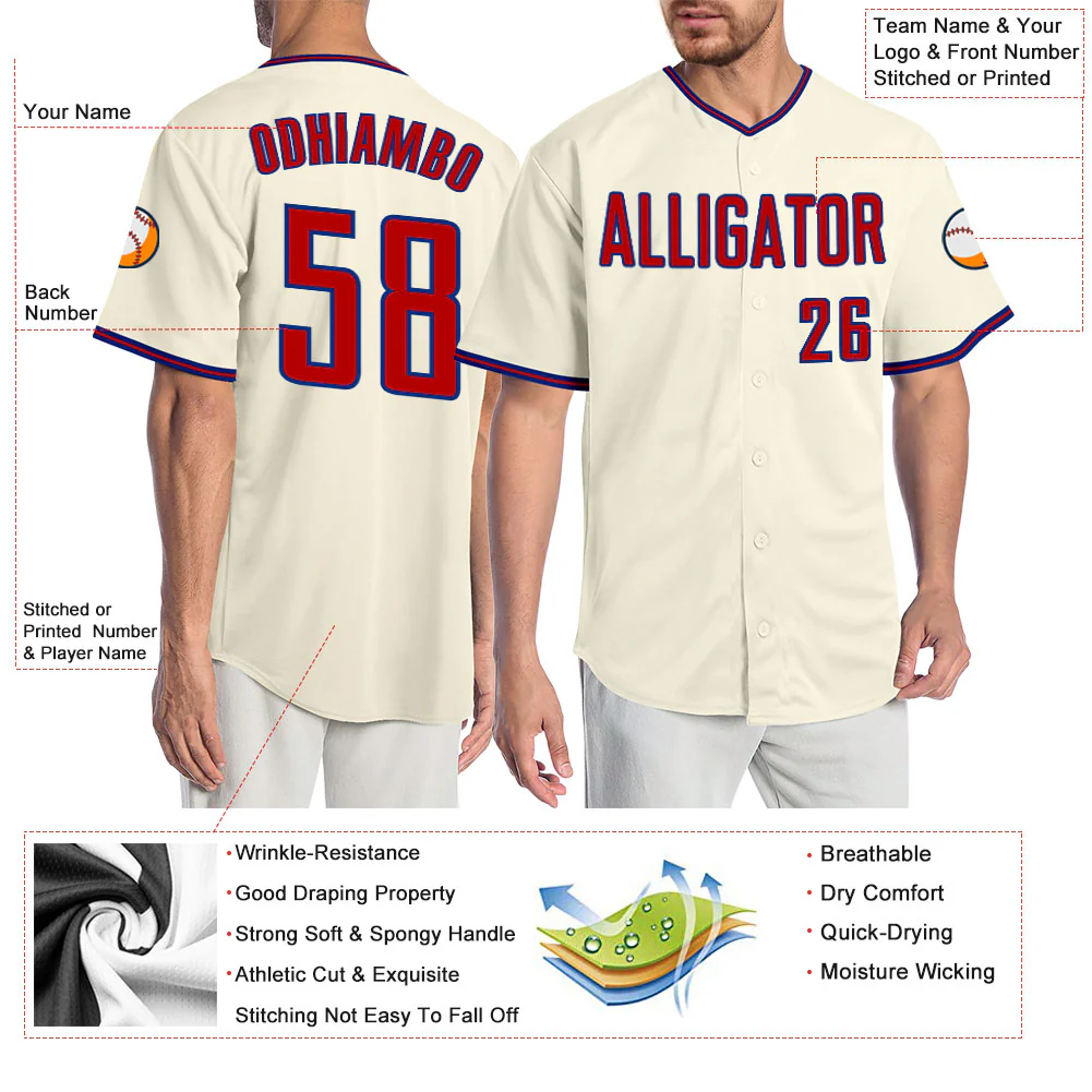 Custom Cream Red-Royal Authentic Baseball Jersey