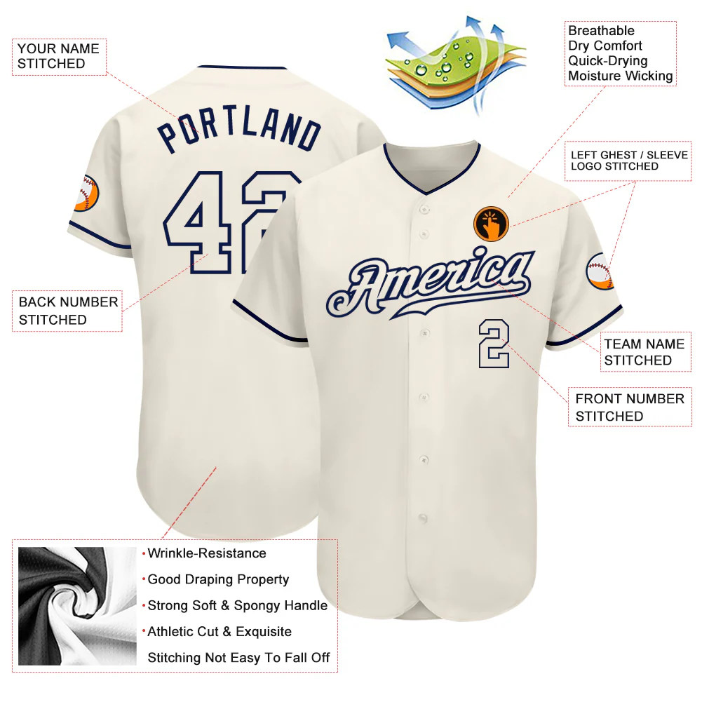 Custom Cream Navy-Orange Authentic Baseball Jersey