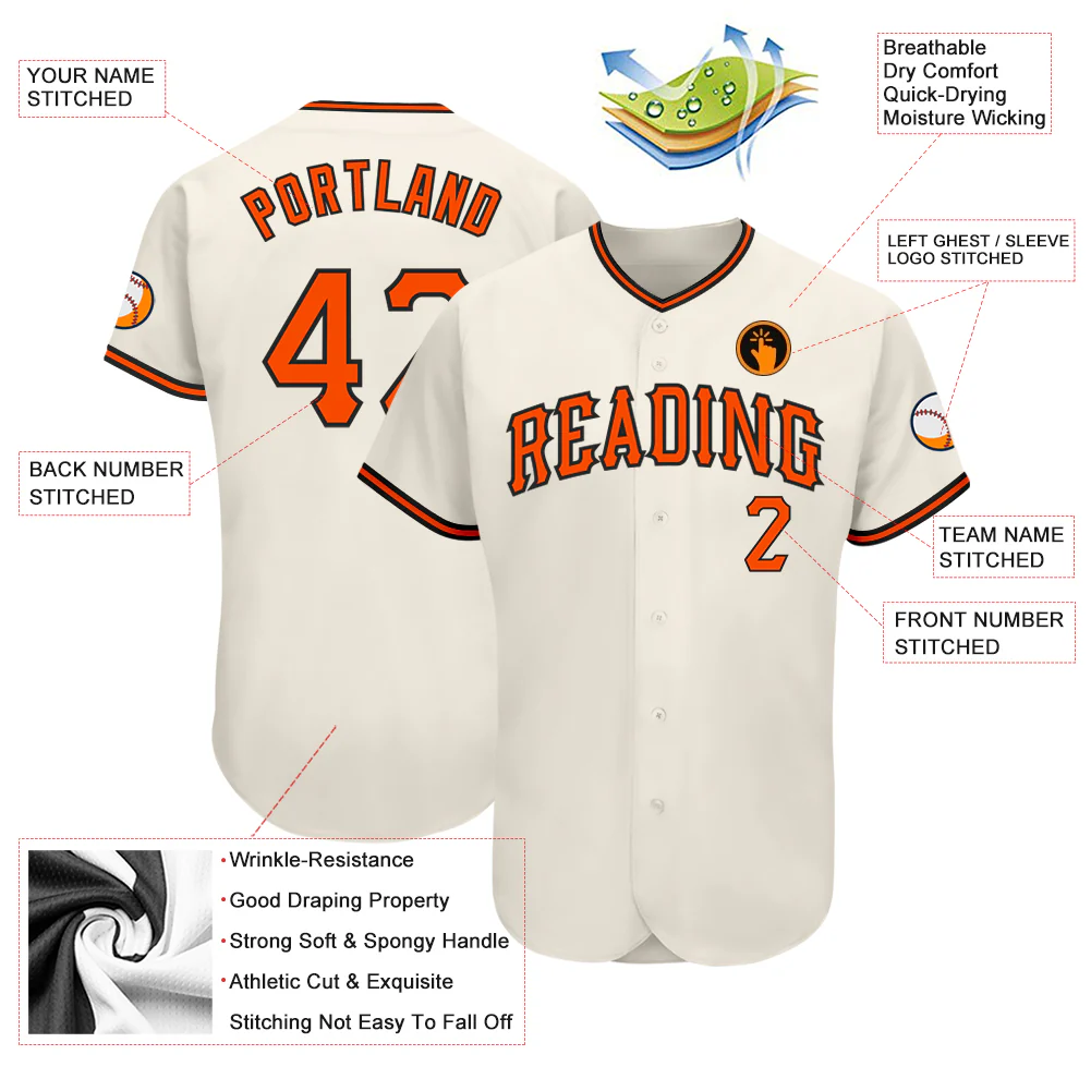 Custom Cream Black-Orange Authentic Baseball Jersey