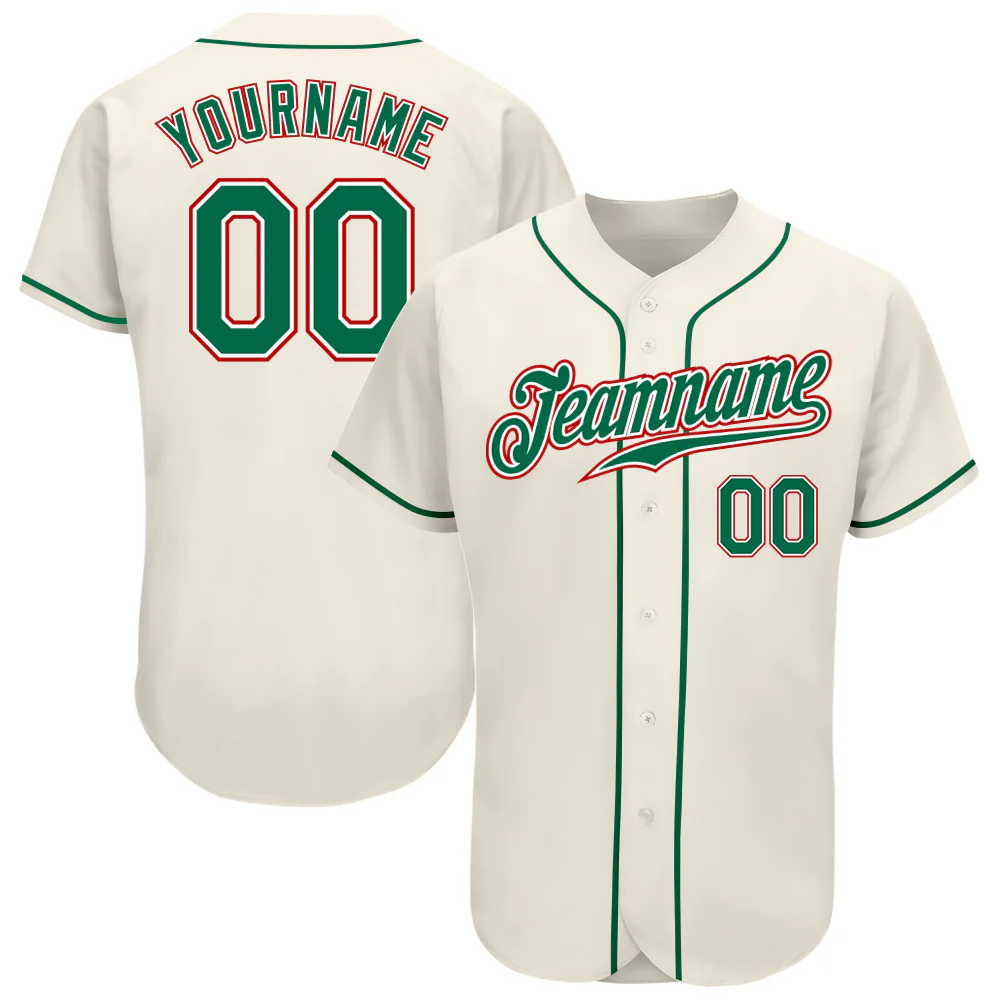 Custom Cream Kelly Green-Red Authentic Baseball Jersey
