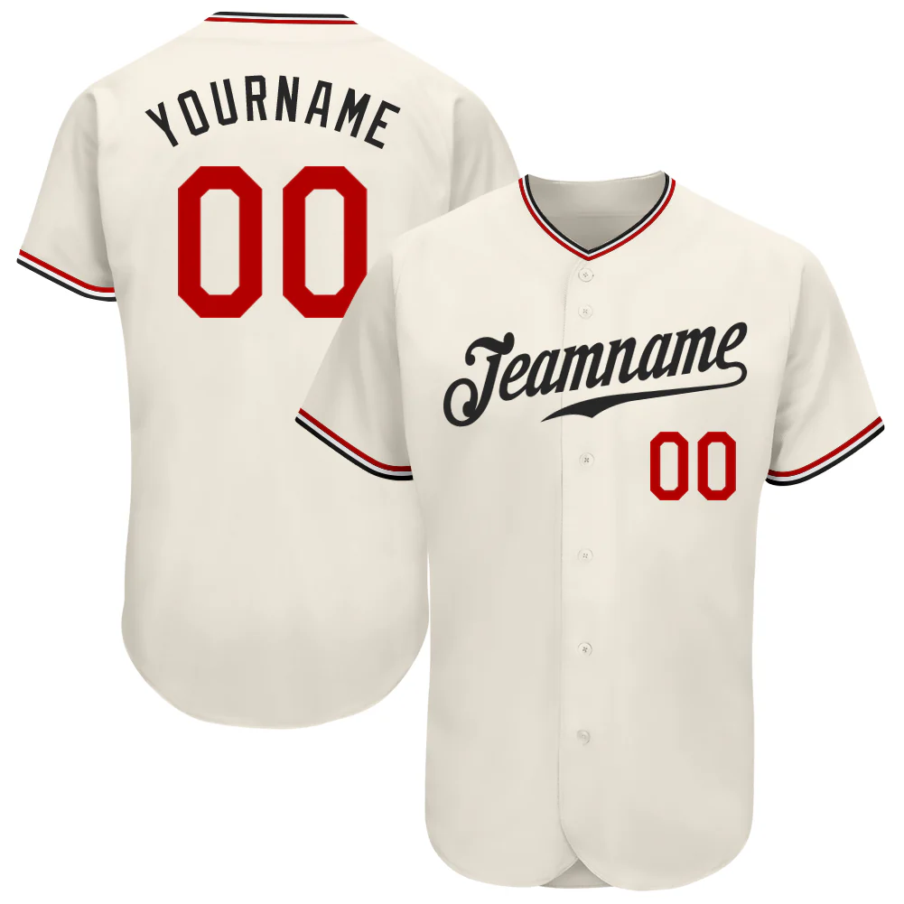 Custom Cream Crimson-Black Authentic Baseball Jersey