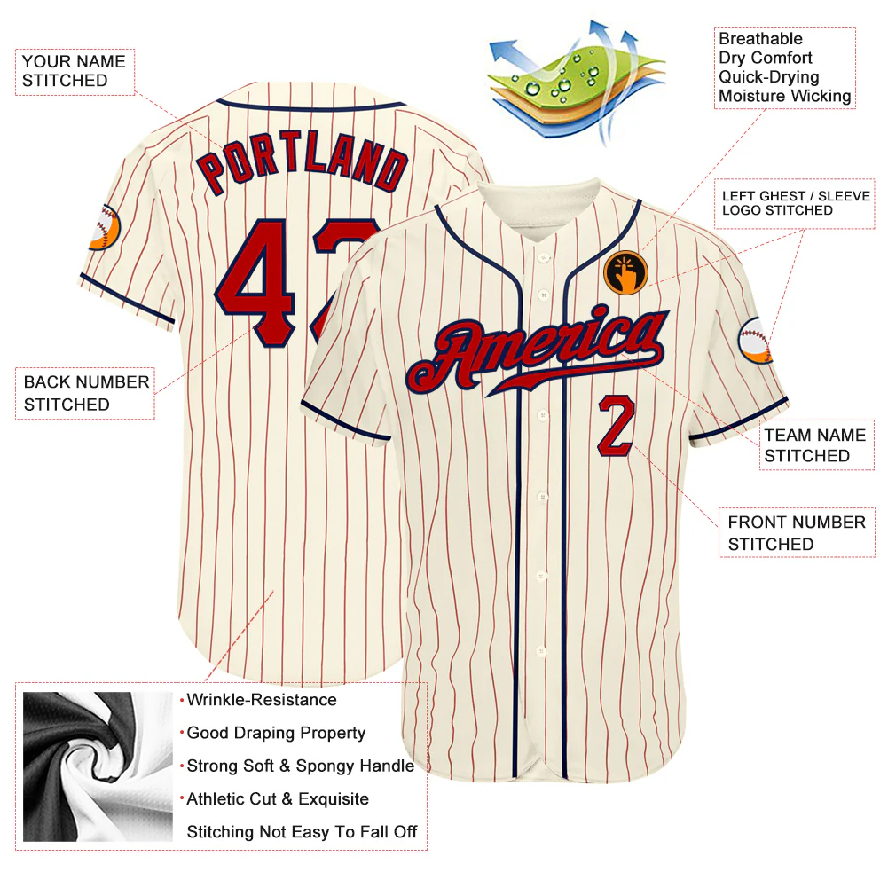 Custom Cream Red Pinstripe Red-Navy Authentic Baseball Jersey