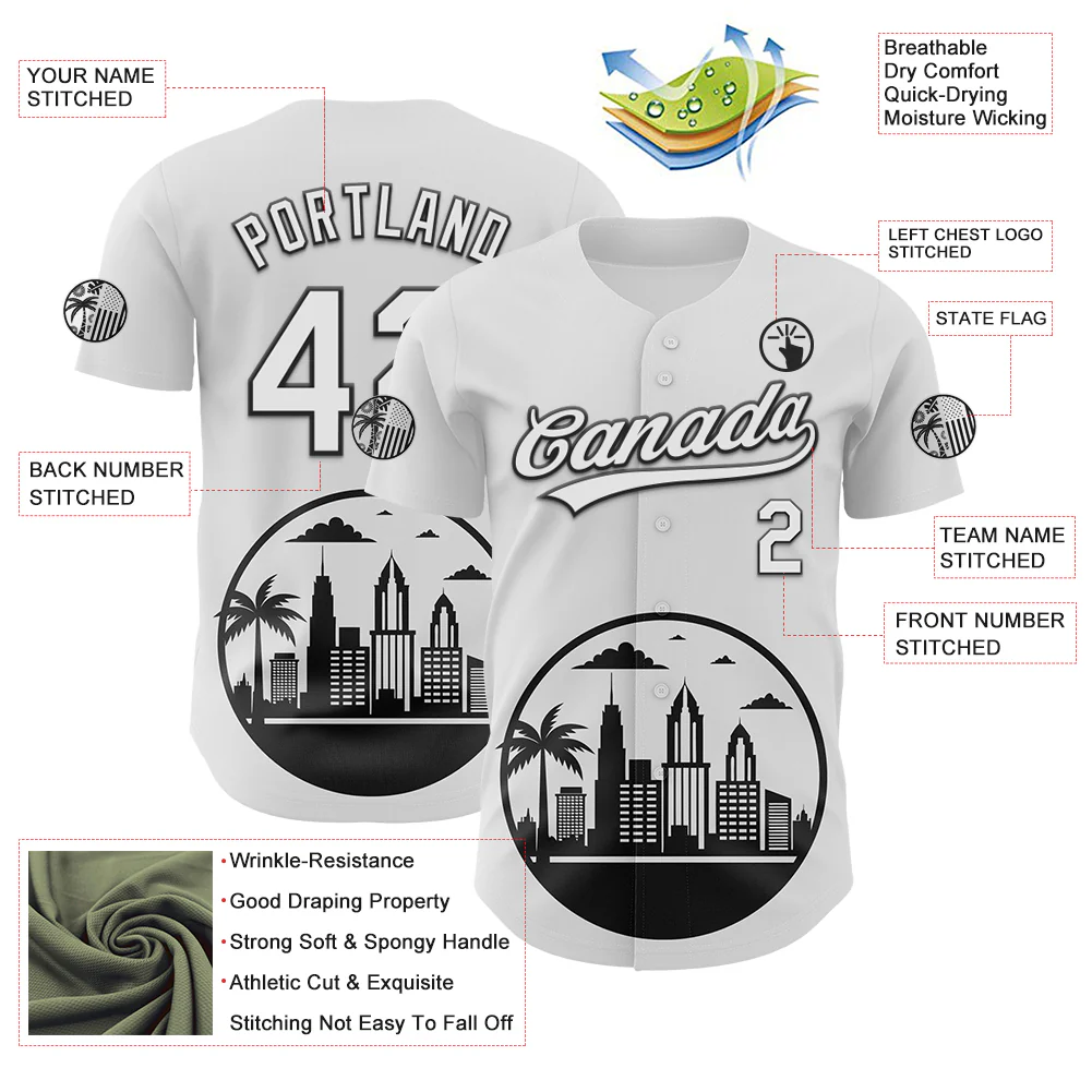 Custom White Black-Gray 3D Urban City Edition Sports Authentic Baseball Jersey