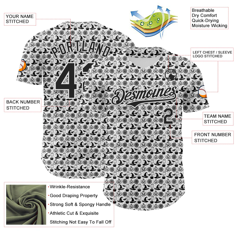 Custom White Black 3D Halloween Pumpkin Doodle Party Costume Ideas Authentic Baseball Jersey