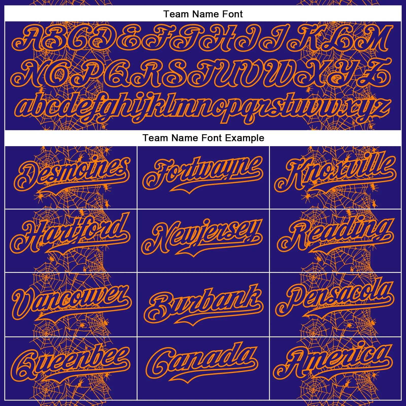 Custom Dark Purple Bay Orange 3D Halloween Spider Net Party Costume Ideas Authentic Baseball Jersey