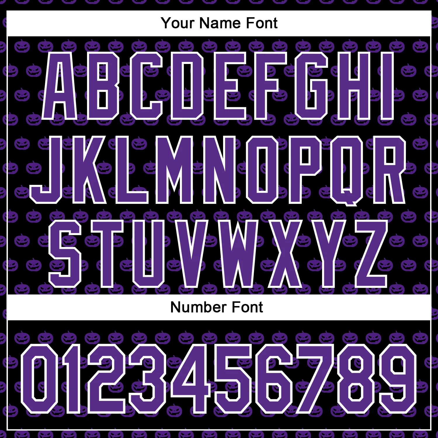 Custom Black Purple-White 3D Halloween Pumpkin Party Costume Ideas Authentic Baseball Jersey