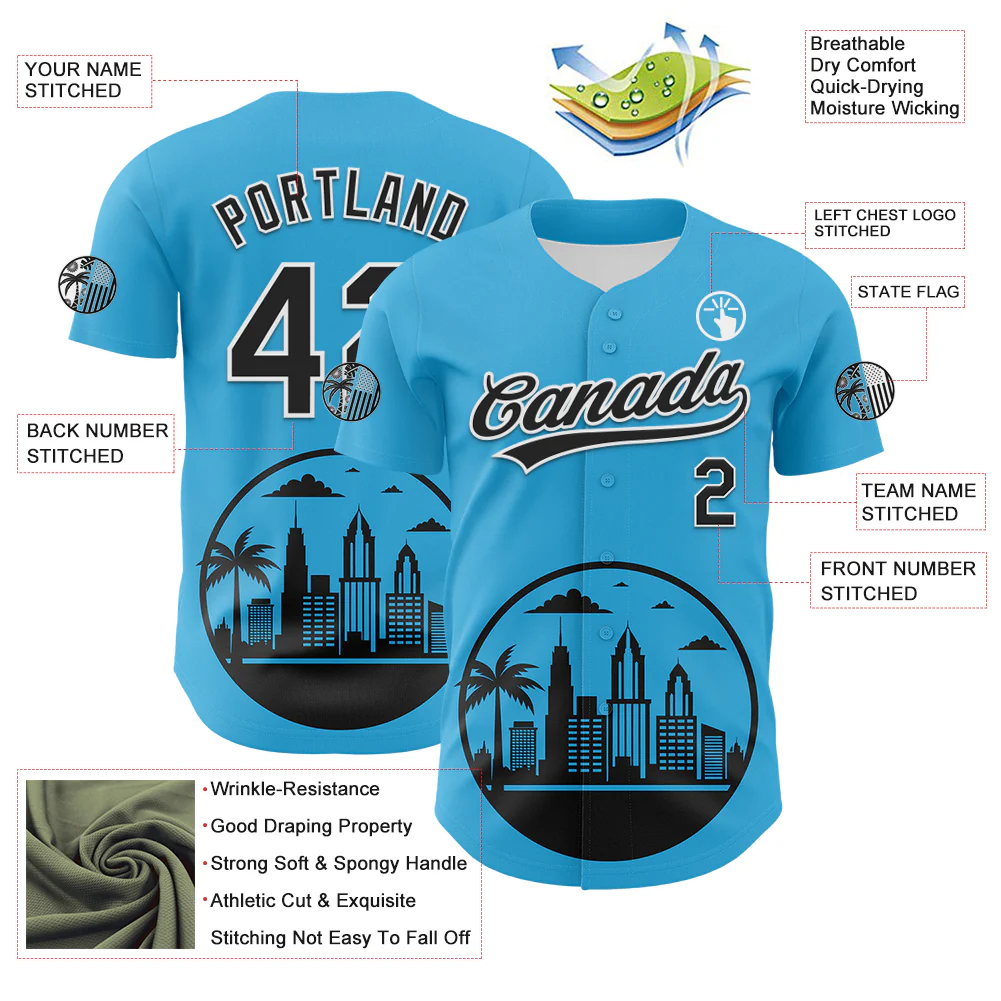 Custom Sky Blue Black-White 3D Urban City Edition Sports Authentic Baseball Jersey