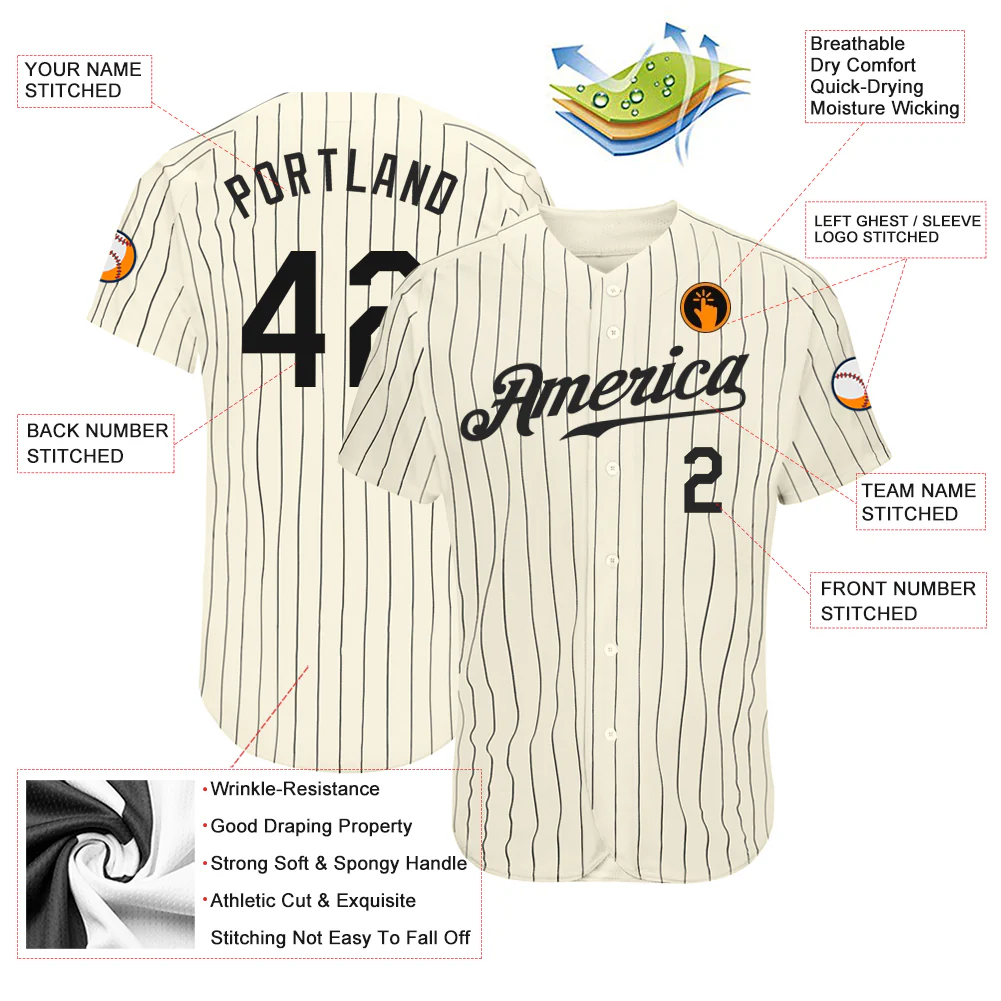 Custom Cream Black Pinstripe Black Authentic Baseball Jersey