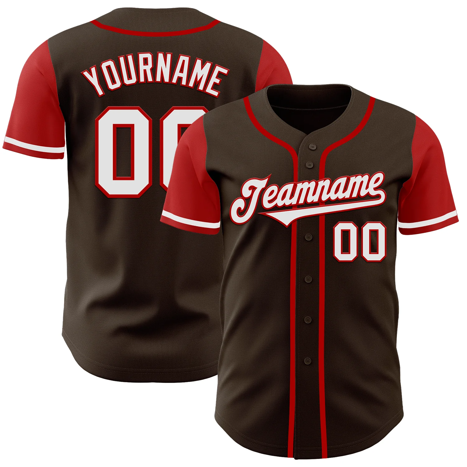 Custom Brown White-Red Authentic Two Tone Baseball Jersey