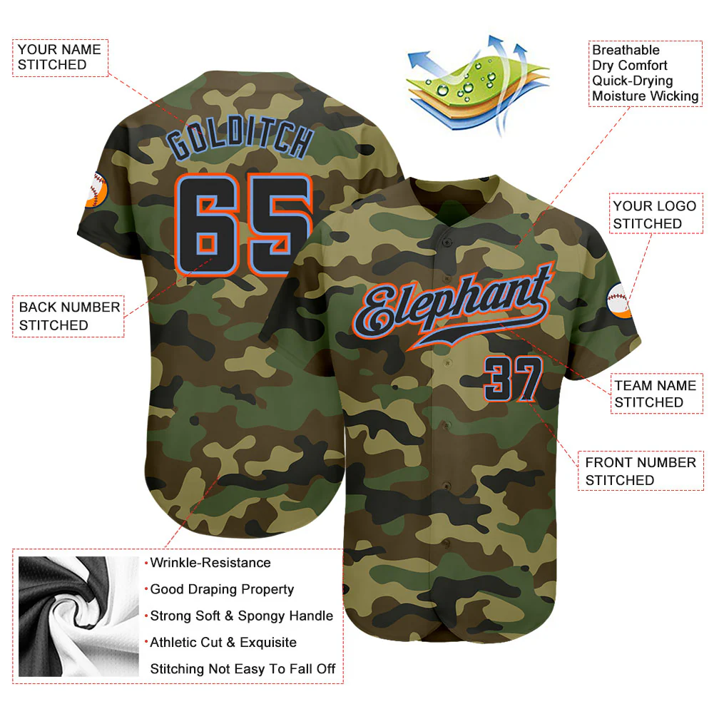 Custom Camo Navy-Orange Authentic Salute To Service Baseball Jersey