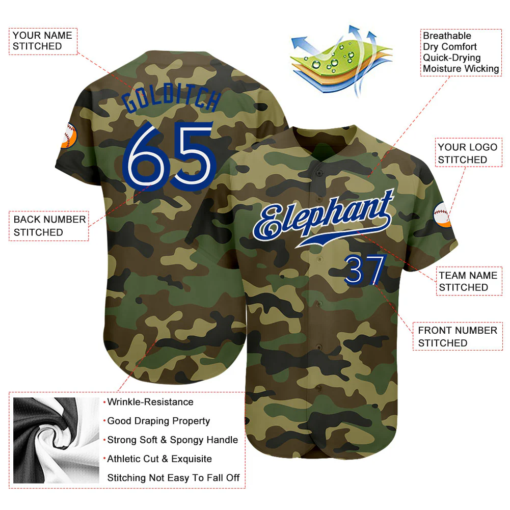 Custom Camo Royal-White Authentic Salute To Service Baseball Jersey