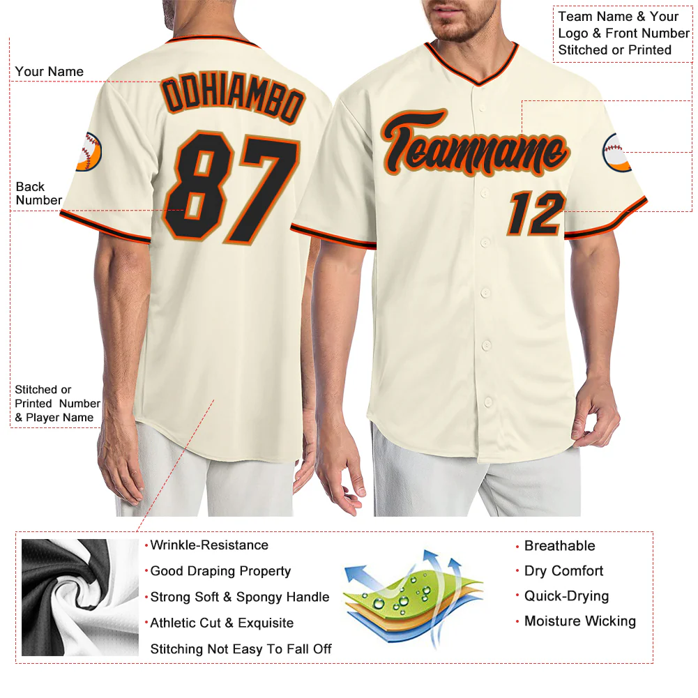 Custom Cream Black Orange-Old Gold Authentic Baseball Jersey