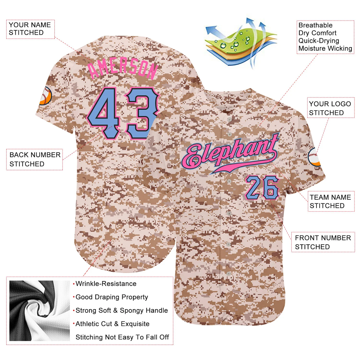 Custom Camo Powder Blue-Pink Authentic Salute To Service Baseball Jersey