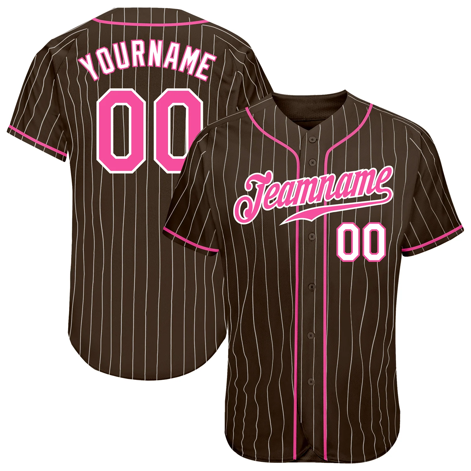 Custom Brown White Pinstripe Pink-White Authentic Baseball Jersey