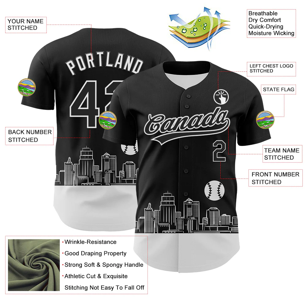 Custom Black White 3D Urban City Edition Sports Authentic Baseball Jersey