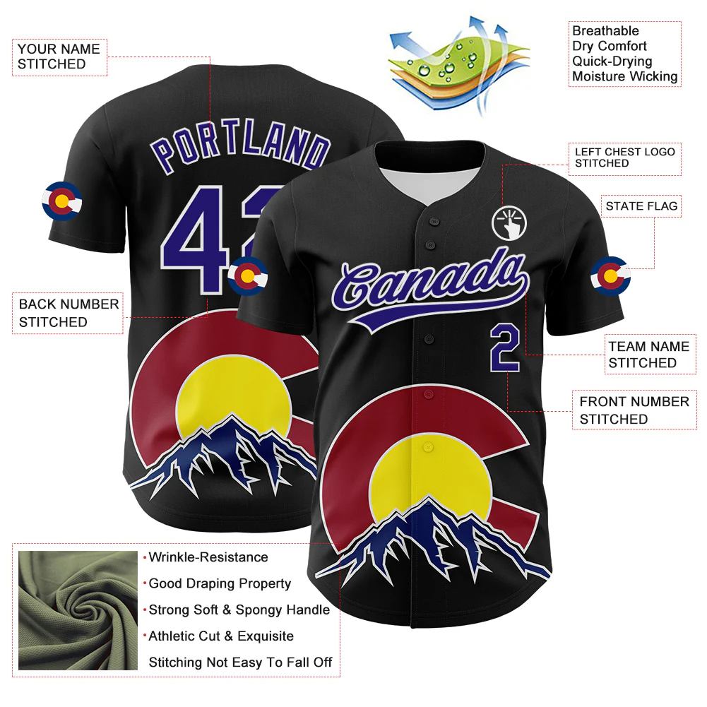 Custom Black Dark Purple Red Yellow Blue-White 3D Urban City Edition Sports Authentic Baseball Jersey