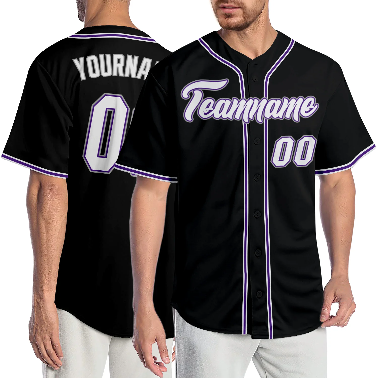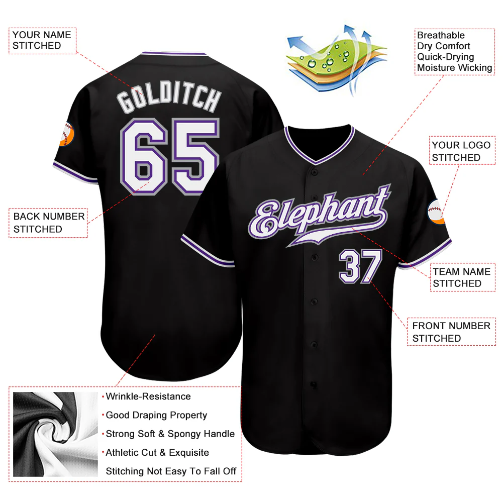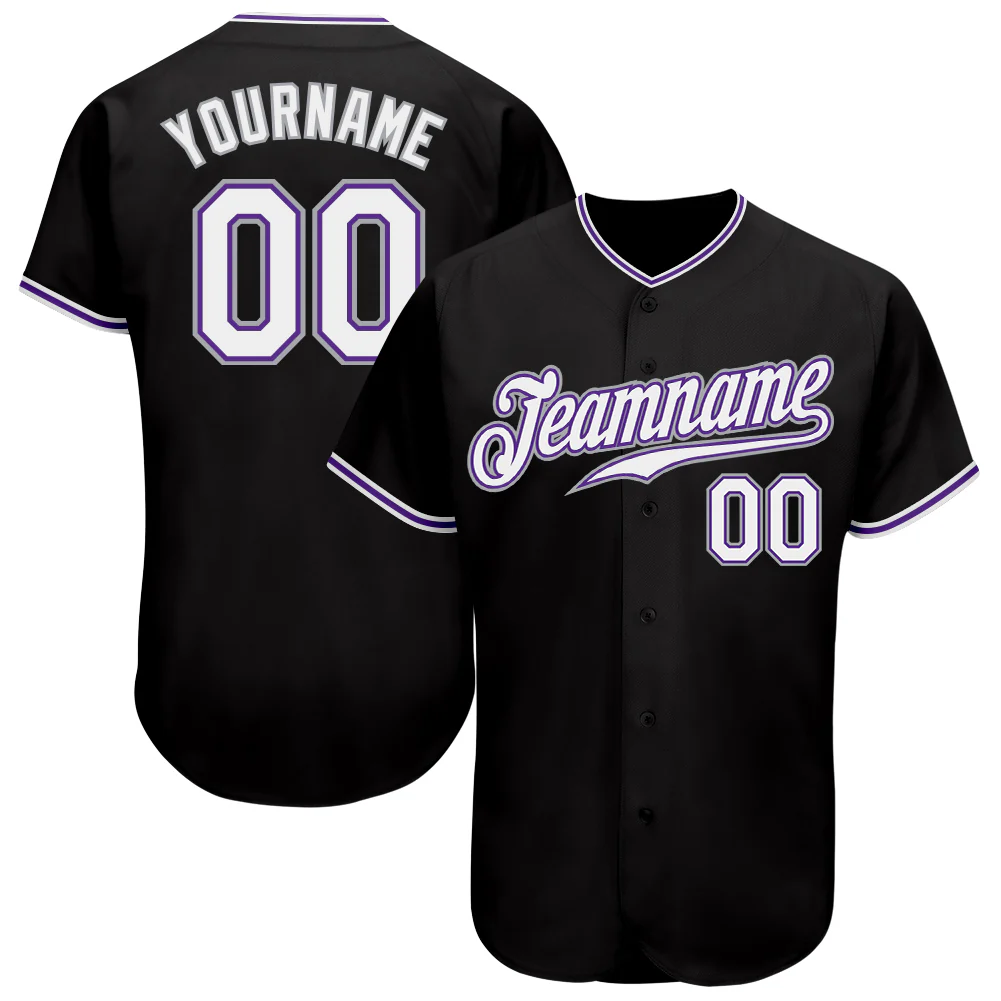 Custom Black White-Purple Authentic Baseball Jersey