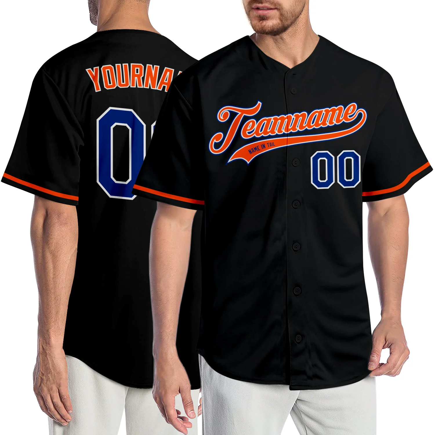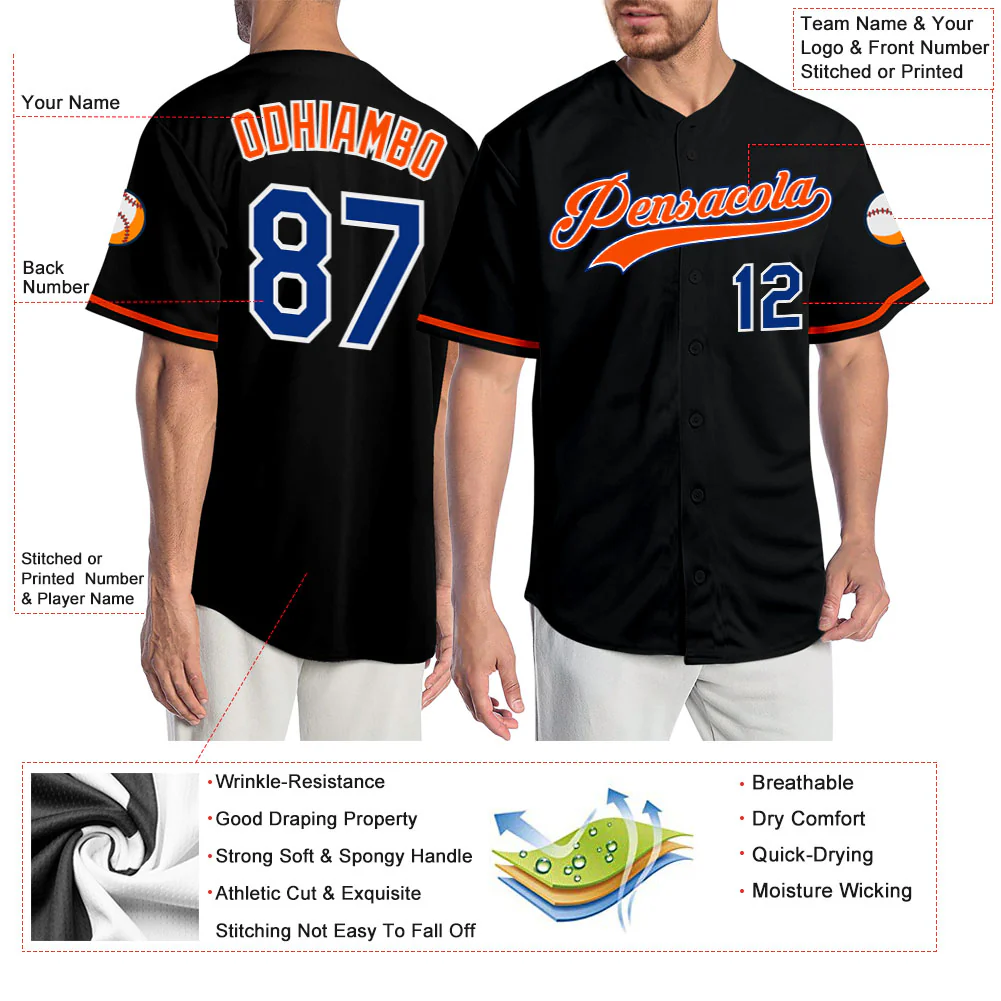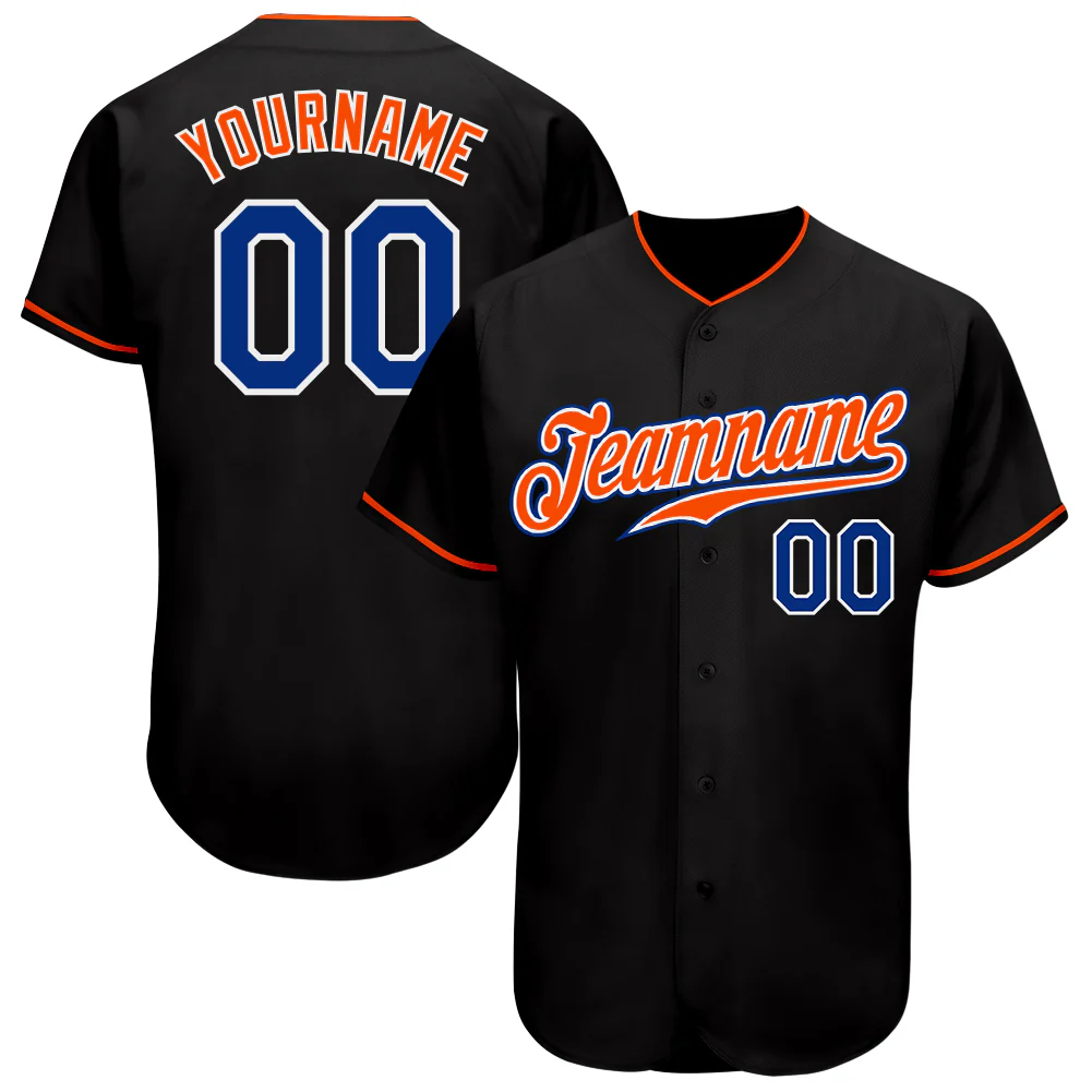 Custom Black Royal-Orange Authentic Baseball Jersey