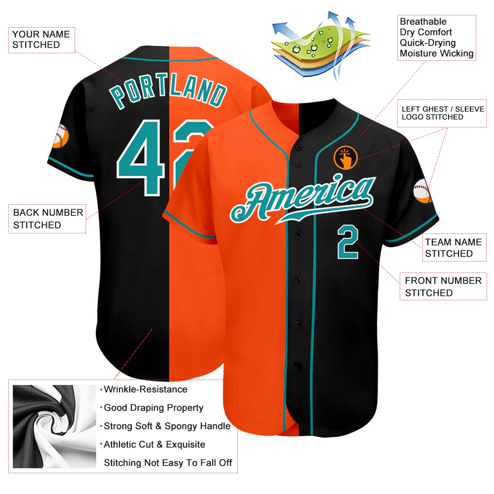 Custom Black Teal-Orange Authentic Split Fashion Baseball Jersey