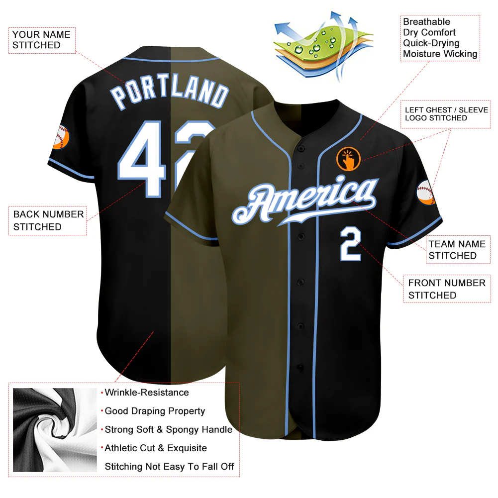 Custom Black White-Olive Authentic Split Fashion Baseball Jersey