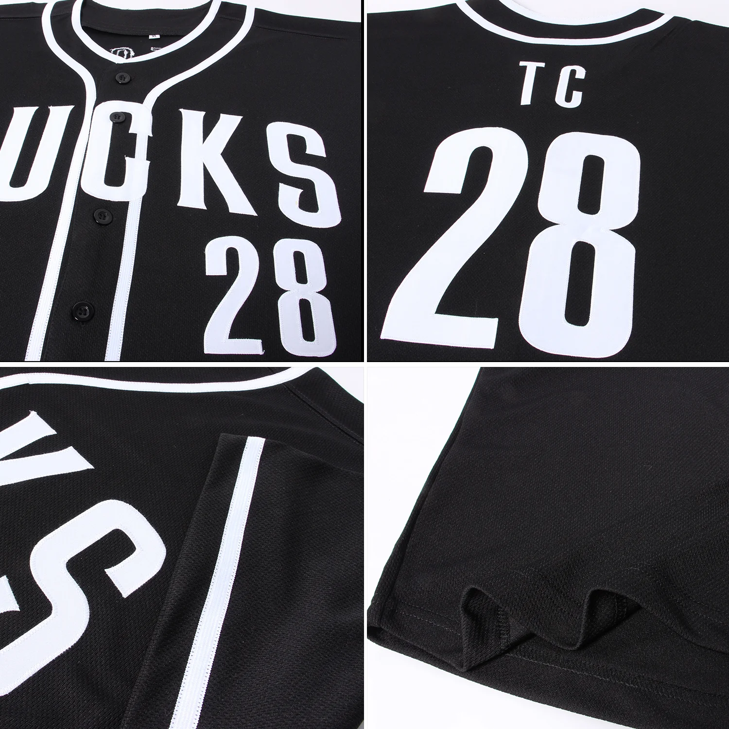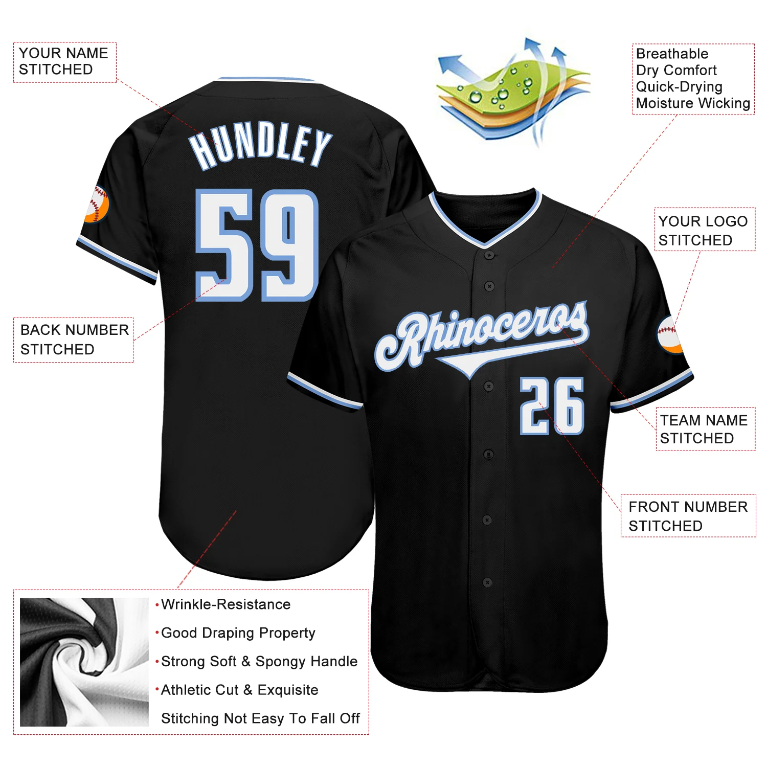Custom Black White-Light Blue Authentic Baseball Jersey