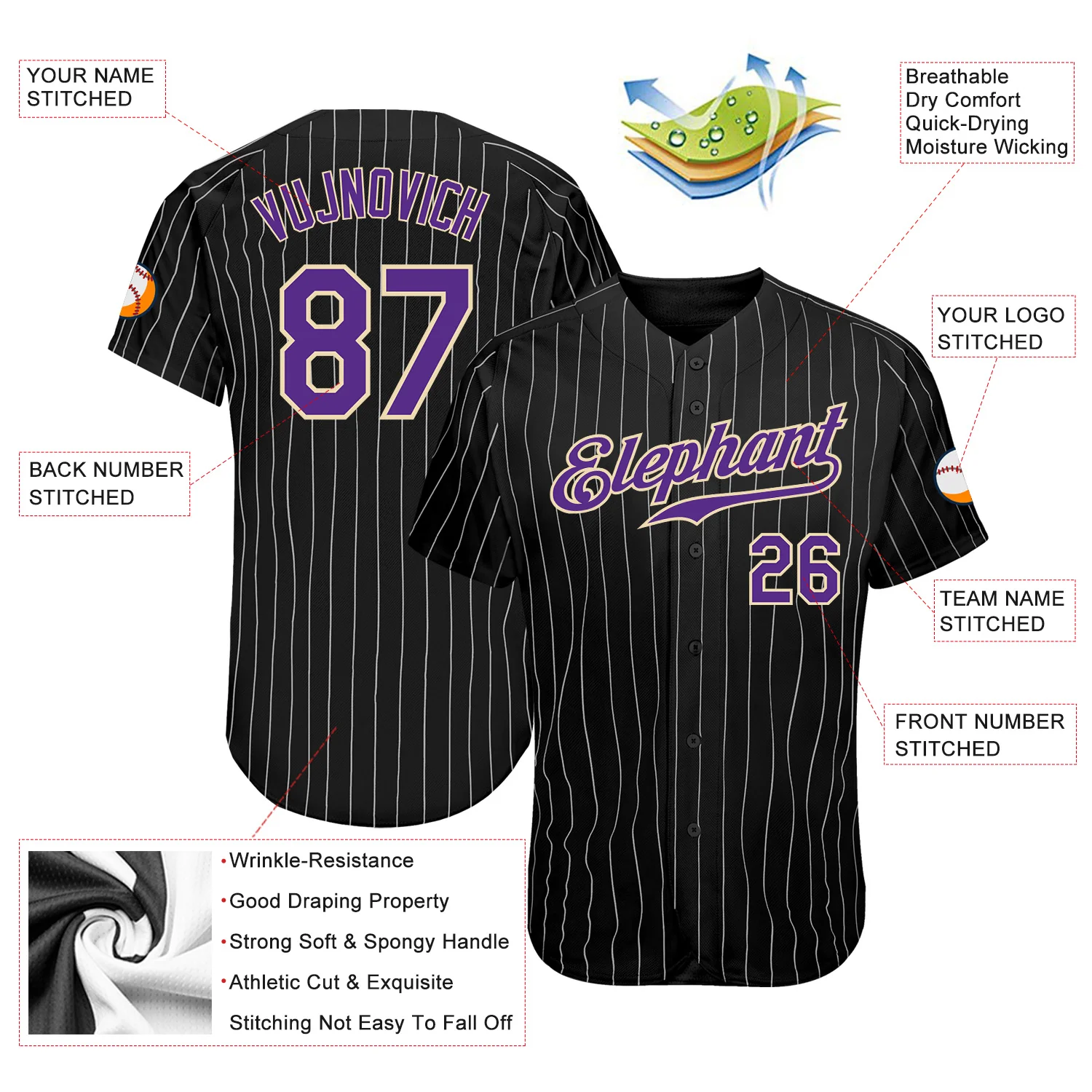 Custom Black White Pinstripe Purple-White Authentic Baseball Jersey