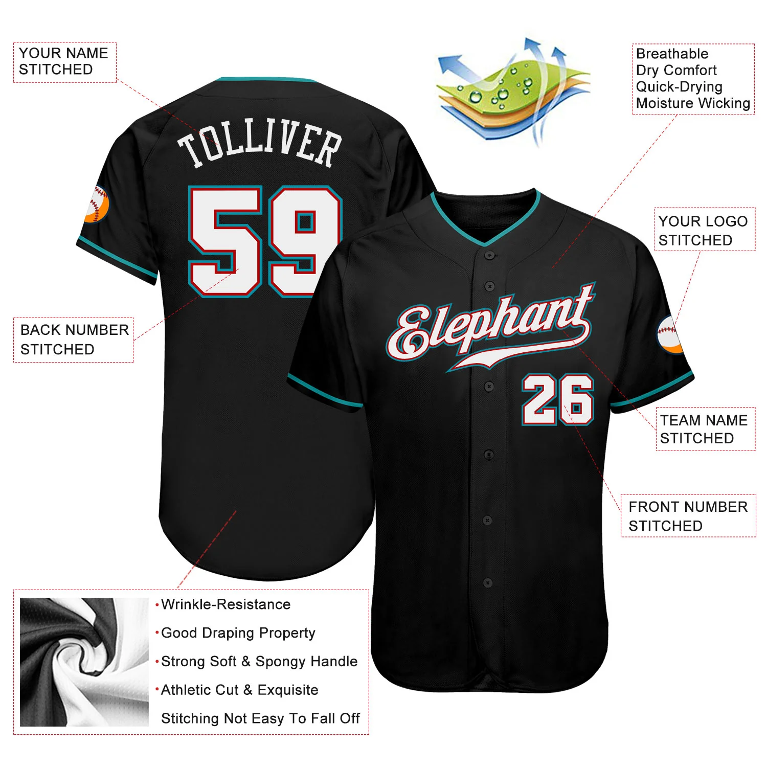 Custom Black White-Teal Authentic Baseball Jersey