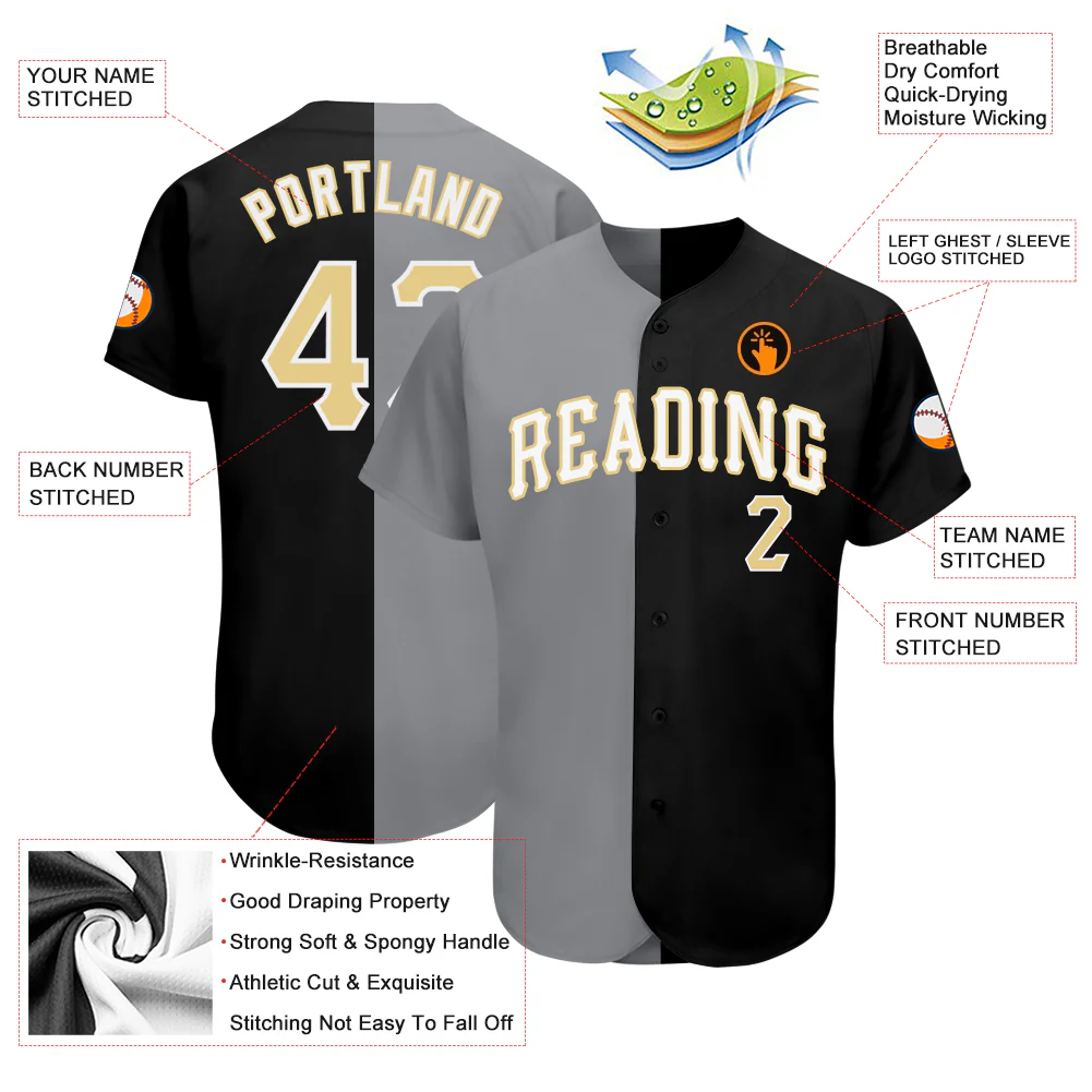 Custom Black Vegas Gold-Gray Authentic Split Fashion Baseball Jersey