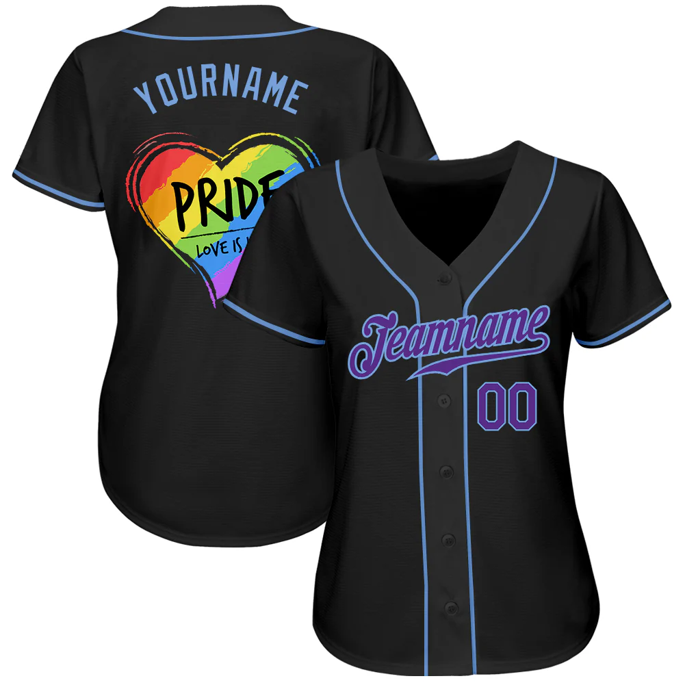 Custom Black Purple-Light Blue Rainbow Colored Heart For Pride Love Is Love LGBT Authentic Baseball Jersey